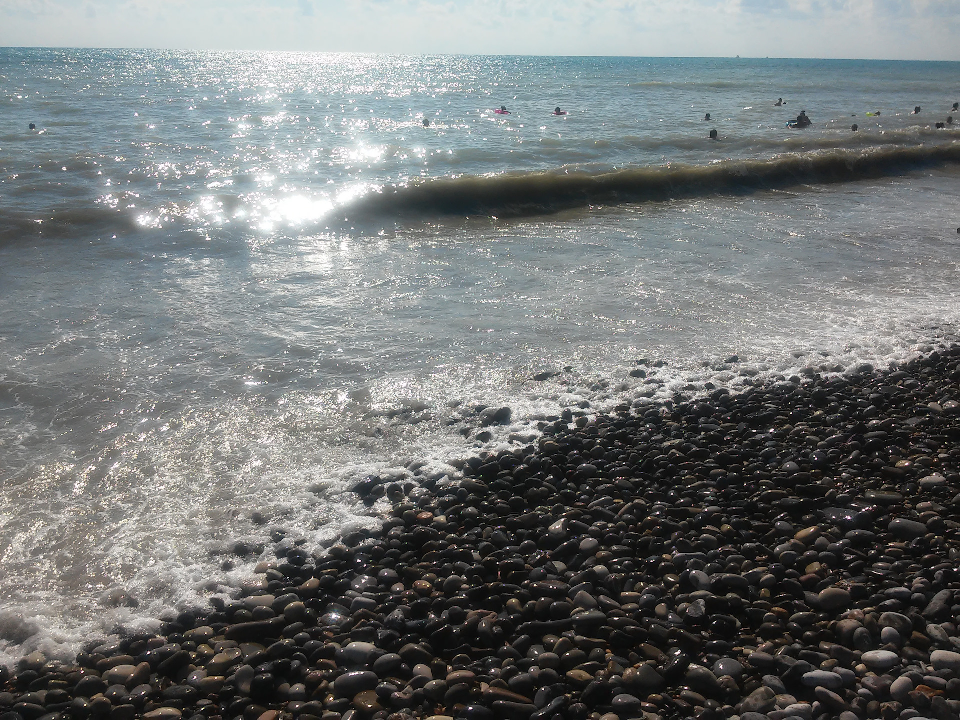Когда чуть утихло, но волны сильные были всёравно, камнями ноги отбивало только так…