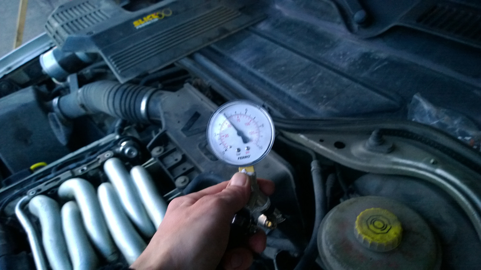 Итак, бензонасос заменен на новый, РДТ новый, все подключено и готово к запуску. Запустили машину на новом бензонасосе, дали поработать, заглушили. Подключили манометр, произвели замеры – все замечательно: