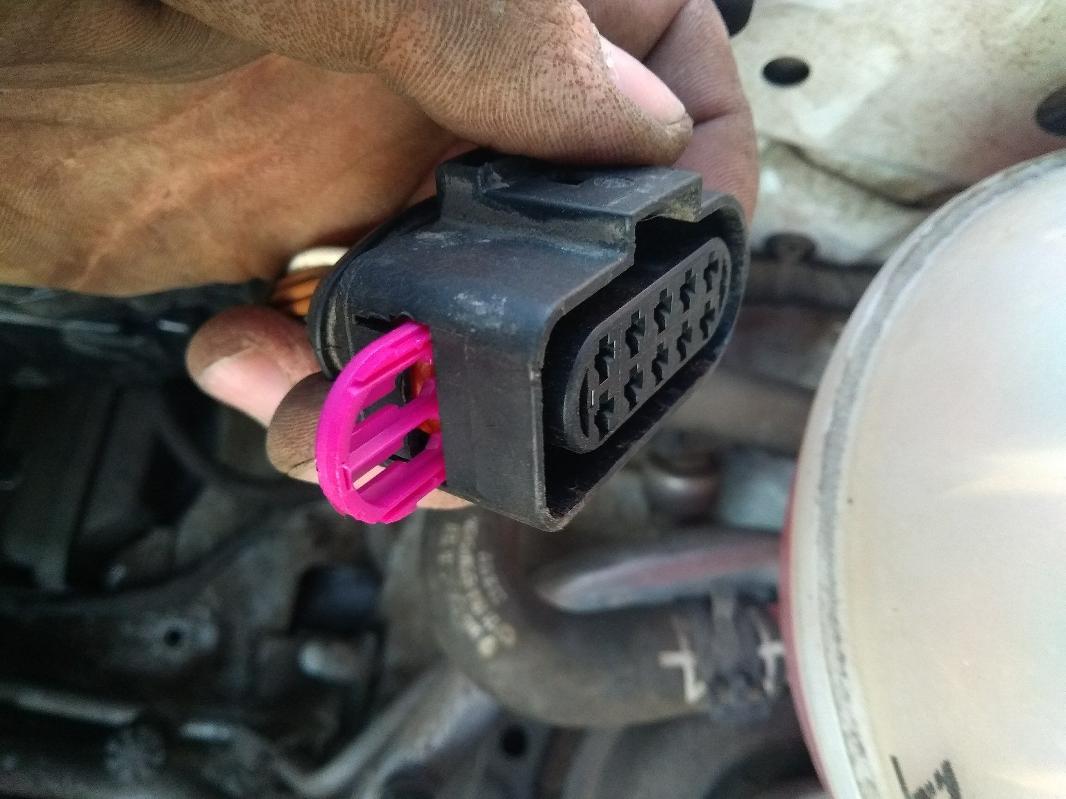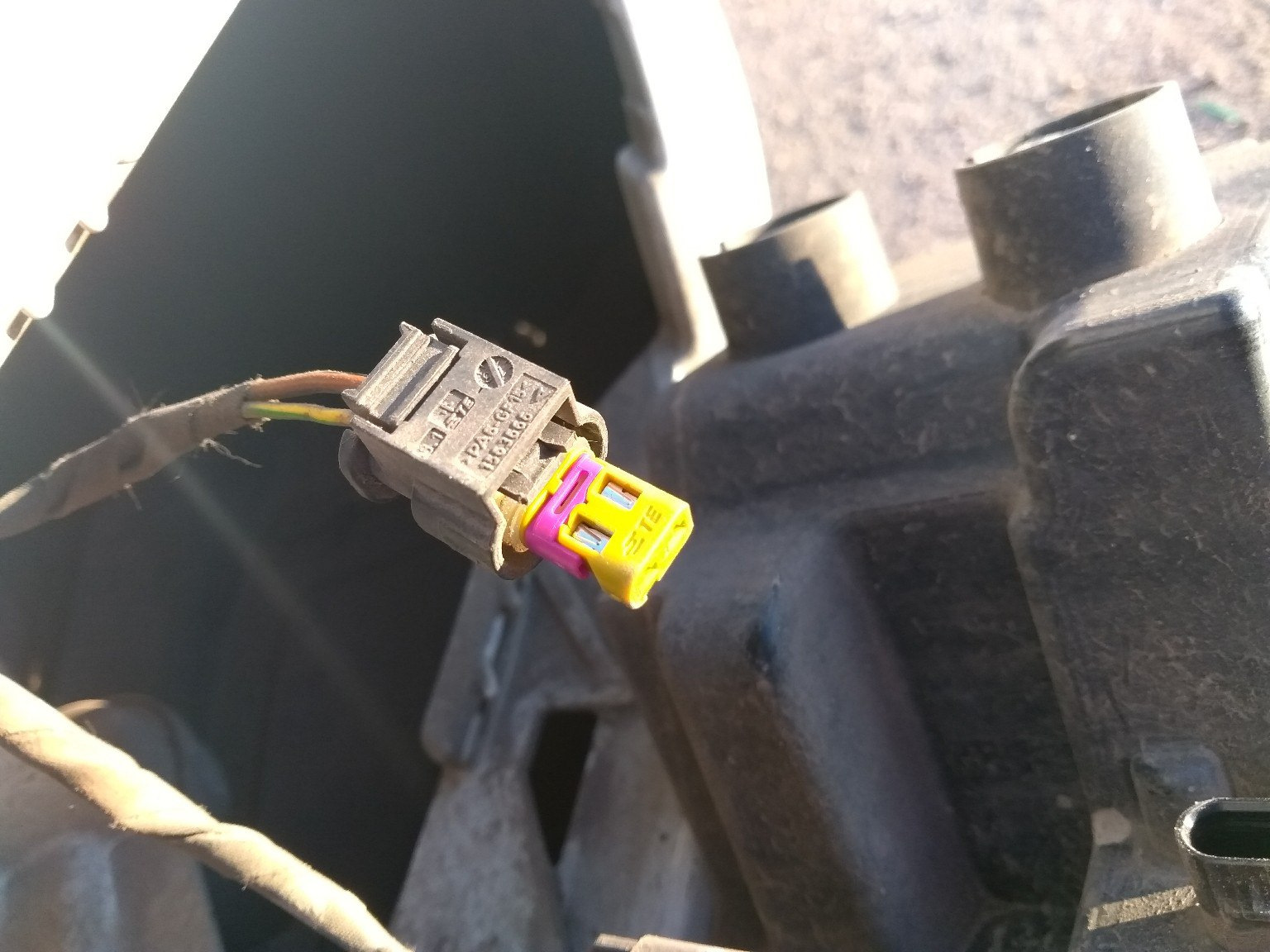 У меня комплектация с дхо в противотуманках, поэтому придется немного доработать проводку, а именно отключить желтый провод от разъема дхо в птф. Для этого снимаем туманку(держится на двух торксах и защелке), снимаем разъем. Дальше я наживил провод (0.5мм2) на желтый провод, обматал хб изолентой и пустил в моторный отсек.