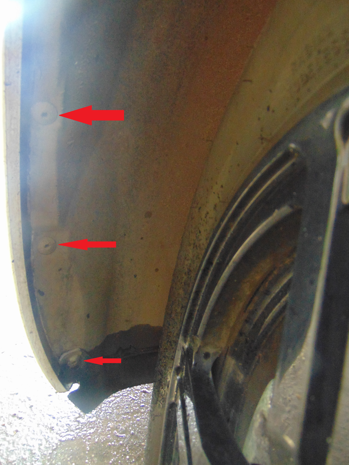 2. Выкручиваем колеса вправо(для правой стороны — влево), откручиваем торксы крепления локера к бамперу(3шт в арке и 2 шт снизу)