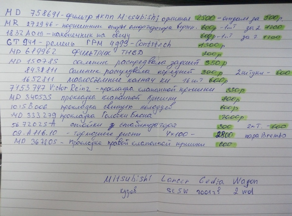 откуда такие цены?=) прокладка гбц 1587 Рублей на эмексе. сальники распредов один 112 рублей второй 250 прокладки клапонной крышки по 500 рублей / ремень грм. 1328.