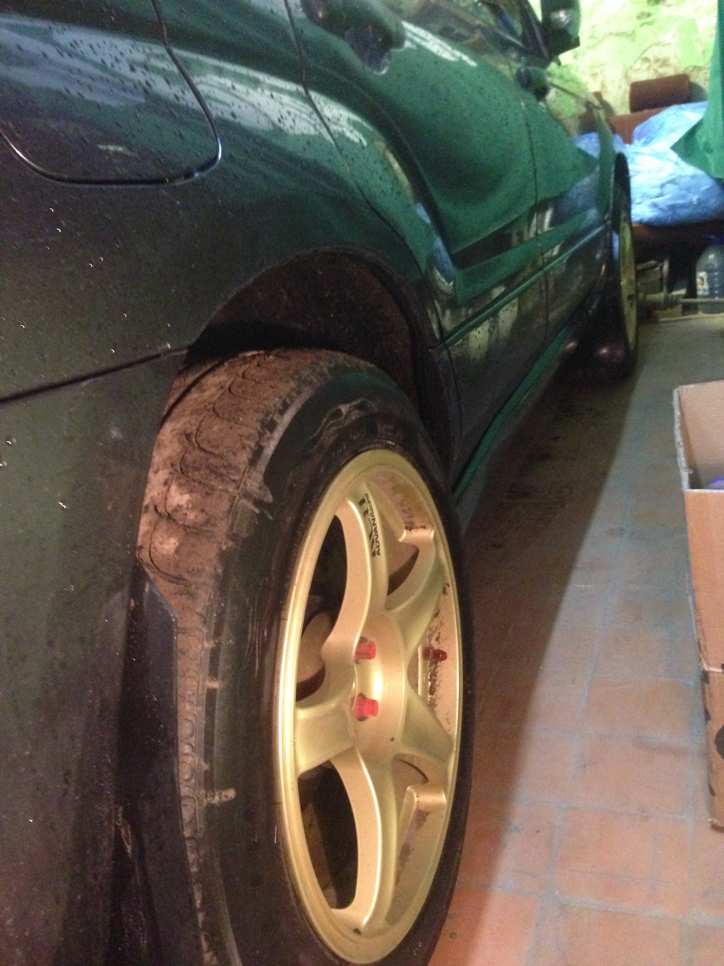 У меня тоже с этого начиналось, потом проставки кинул и в конце концов нога между колесом и крылом перестала влазить
