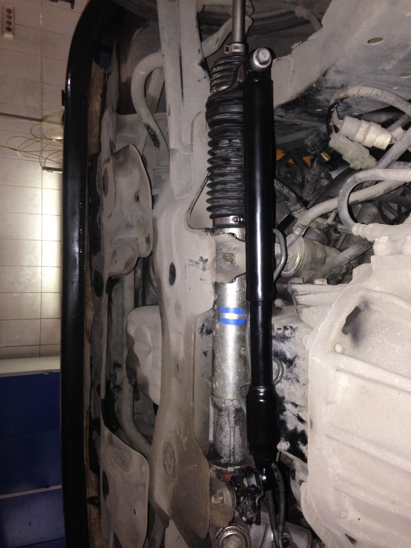 Ещё пришёл рулевой демпфер, не оригинал тойота конечно, но тоже не менее плох, демпфер этот каталожно ставится на мерс w140 ( в простонародье "кабан" "слон" "рубльсорок" ) встаёт болт он. По ощущениям наличие демпфера кардинально меняет рулёжку.