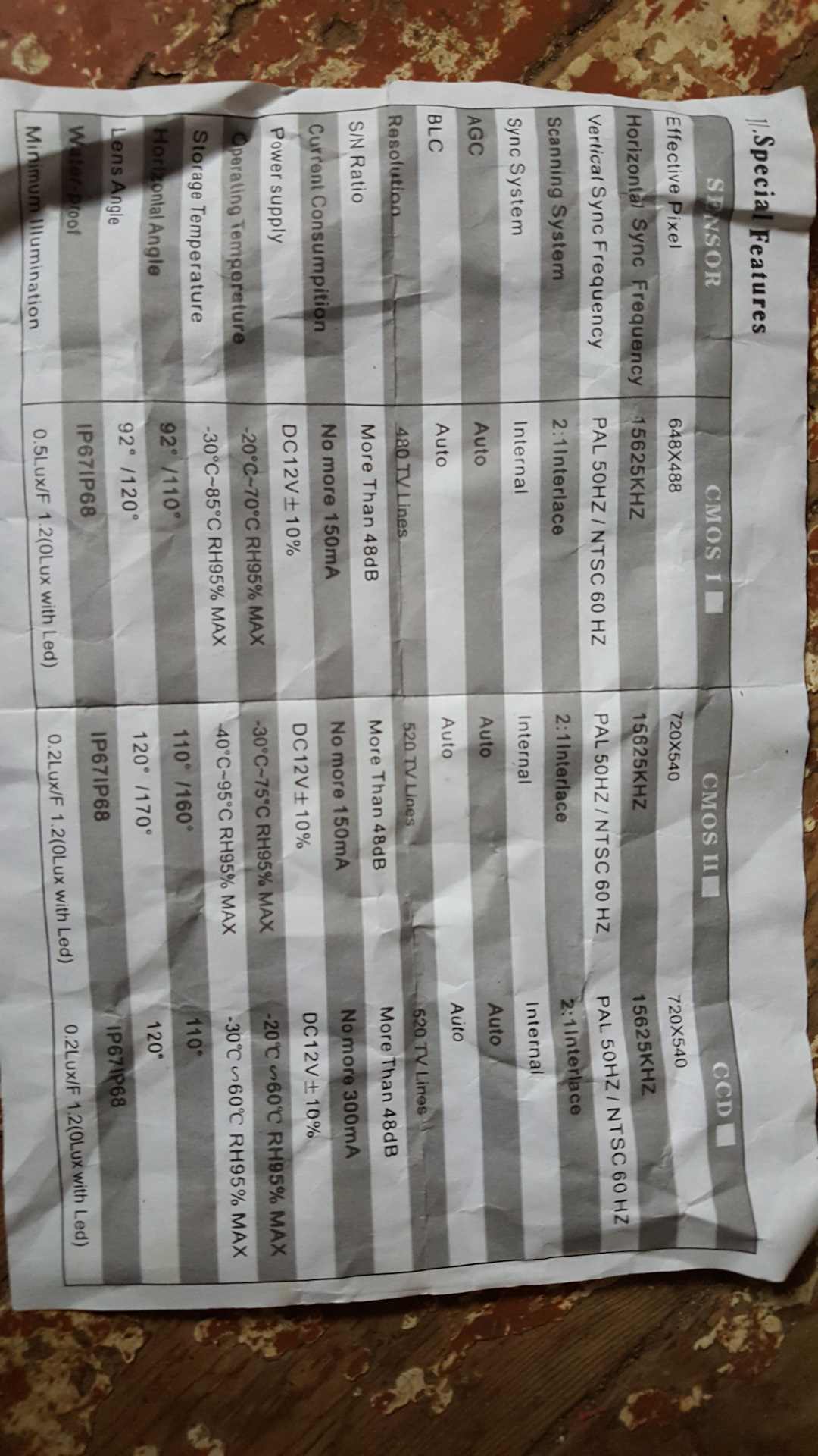 (я ещё пока не разобрался, CMOS I это, CMOS II или CCD)