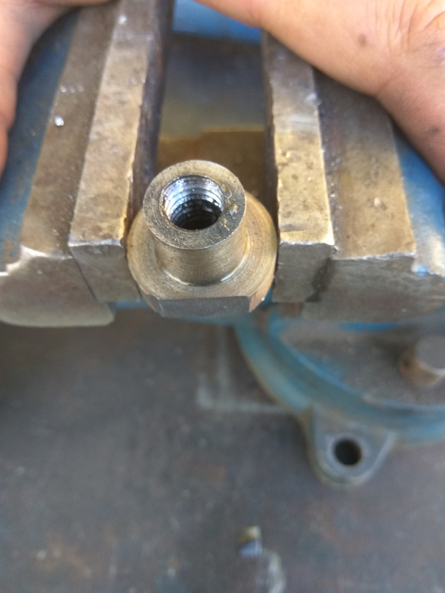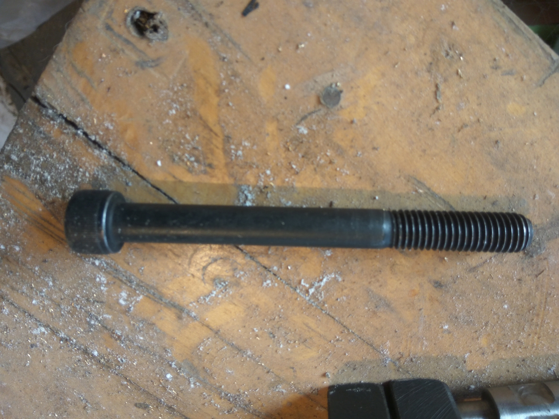 Изначально хотели изготовить втулку и вогнать ее в крепление, тем самым компенсировав те места, где болт сделал себе канавку, но потом решили заменить родной М8 на М10. Встал он туда как раз впритык. Рассверлили переднее ухо генератора под М10, а для заднего уха изготовили новую втулку с резьбой под болт. А сзади еще законтрили гайкой.Тем самым навсегда решив проблему откручивания нижнего болта от вибрации. Теперь генератор стоит ровно.
