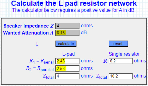 Расчет L-Pad: sengpielaudio.com/calculator-Lpad.htm