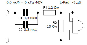 Г-образный аттенюатор твитера L-Pad. Понижаем чувствительность и снижаем резонанс