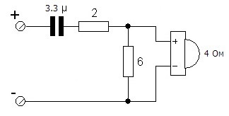 Суммарное сопротивление цепочки вместе с подключенным динамиком должно остаться равным сопротивлению твитера (4 Ом).