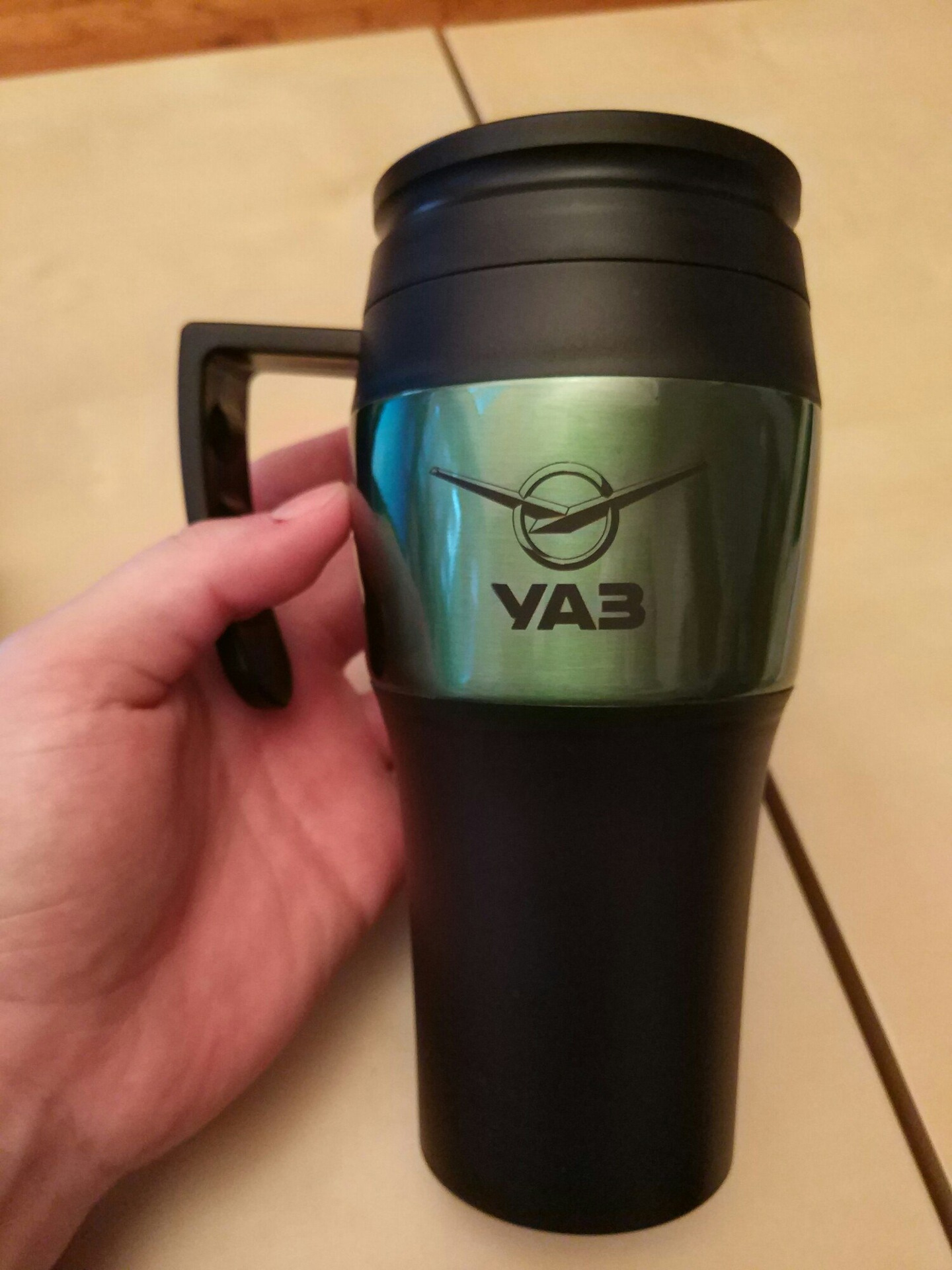 После непродолжительных водных процедур и солнечных ванн, поехали обратно. Прошли тест-драйв нового патриота. Особенно отличий не заметил, только кажется подвеска помягче. Инструктора просто овощи — не знают вообще ничего, хорошо, хоть знают, что это уаз)) Потом начал приставать к девушкам со стенда у который стояла куча пакетов с вопросами, кому они причитаются и могу ли я себе один присвоить, на что встретил взгляд непонимания происходящего и решил удалиться. Через пару минут ведущий пригласил всех прошедших тест-драйв получить памятные сувениры)) Короче они походу забыли, что надо раздавать пакеты. Четко следуют своей корпоративной стратегии: вроде всё по-взрослому, но постоянно какие-то мелкие косяки) В общем, досталась мне фирменная термокружка и футболка размера XL) Брендовая термокружка оказалась очень кстати, совсем недавно думал приобрести, а тут сама пришла))