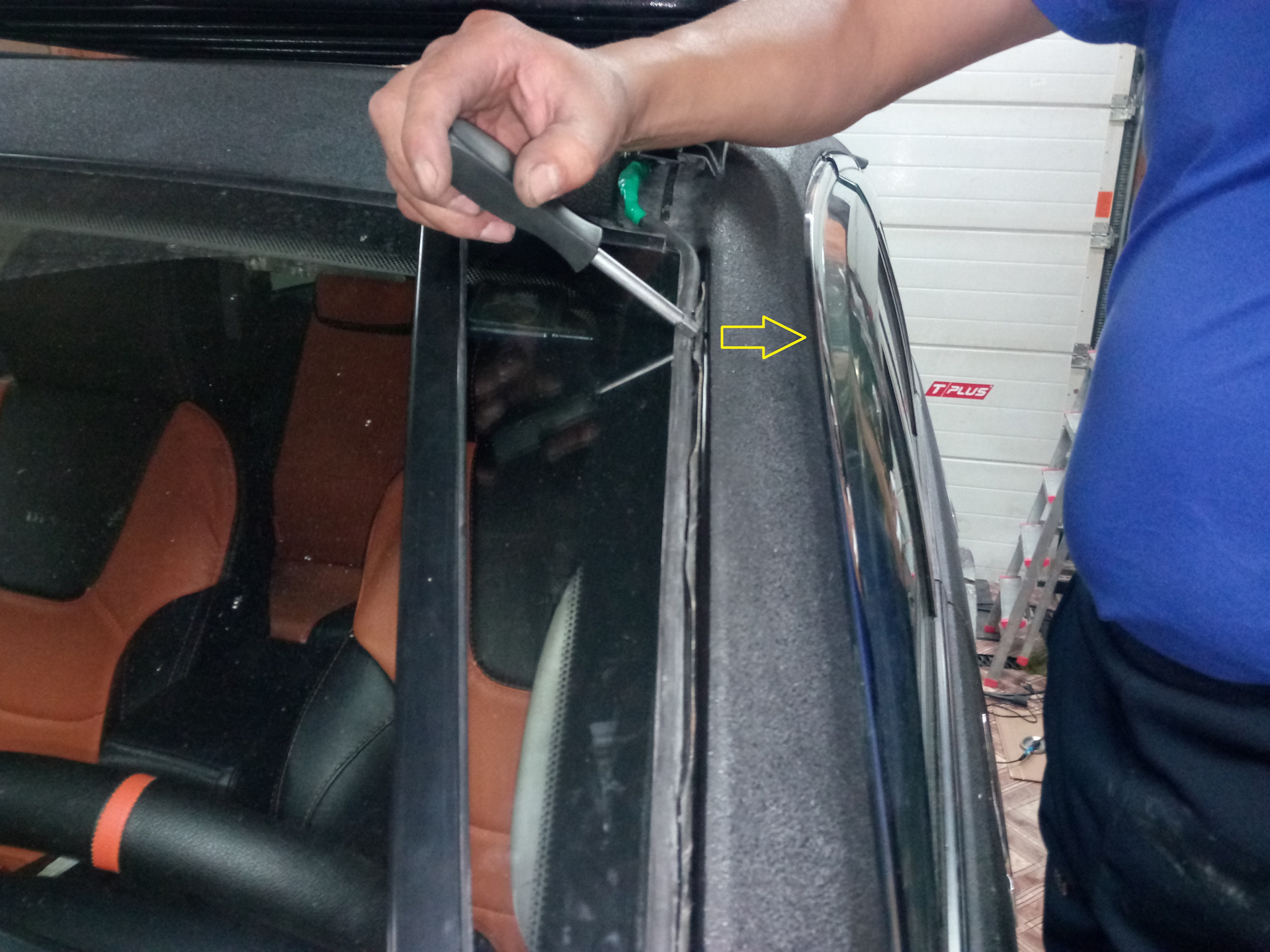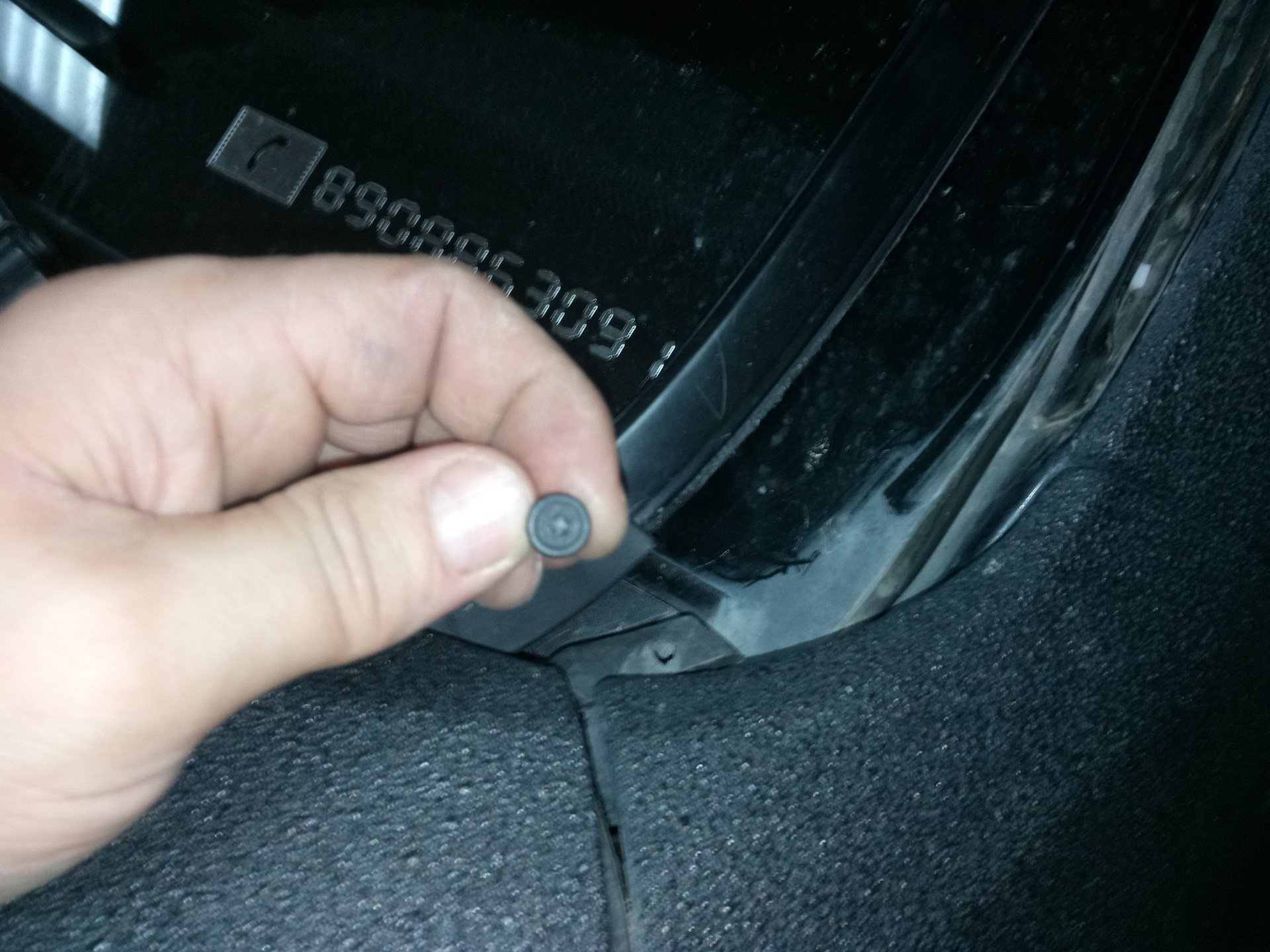 Выкручиваем шуруп и снимаем клипсу, с боковой панели лобового стекла.