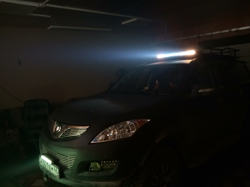 Подключали закрытый, на экспедиционном багажнике LED LIGHT BAR и пере подключили Мини LED LIGHT BAR, который я подрубал сам к ПТФ, электрик Мурат предложил вывести тоже отдельно через реле, на освободившуюся кнопку внедренной мною панели кнопок, так как Мурат предложил не на три подключать верхнюю балку а на две кнопки мол две нажал горит вся зачем мол первая боковой свет, вторая центр, третья все вместе, лучше нижнюю подключи на третью кнопку так и решили!