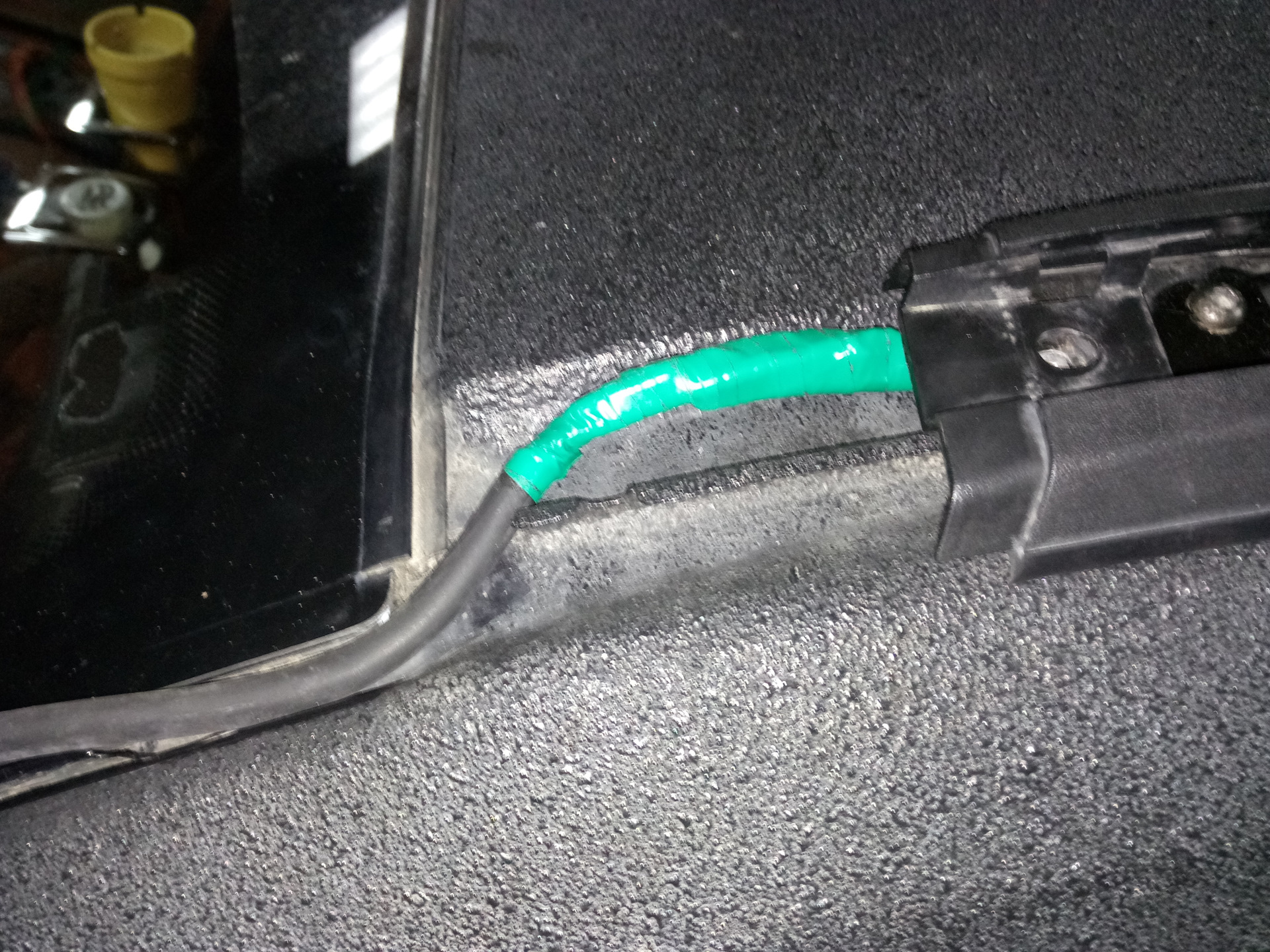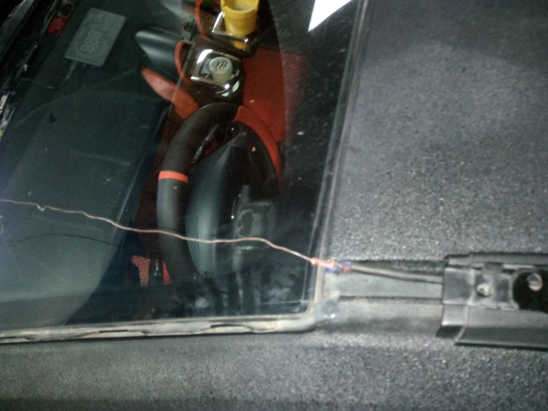 Когда укладывали провод под панелью бакового стекла, пришлось срезать излишки клея на котором оно держится дабы везде лег провод идеально, и что бы застегнуть последнюю клипсу данной панели, постучали маленько металлическое крепление в указанном направлении, так как клипса и без провода не застегивалась как на заводе застегнули не знаю хотя зазор там был всегда сейчас его нет! Легла панель идеально!