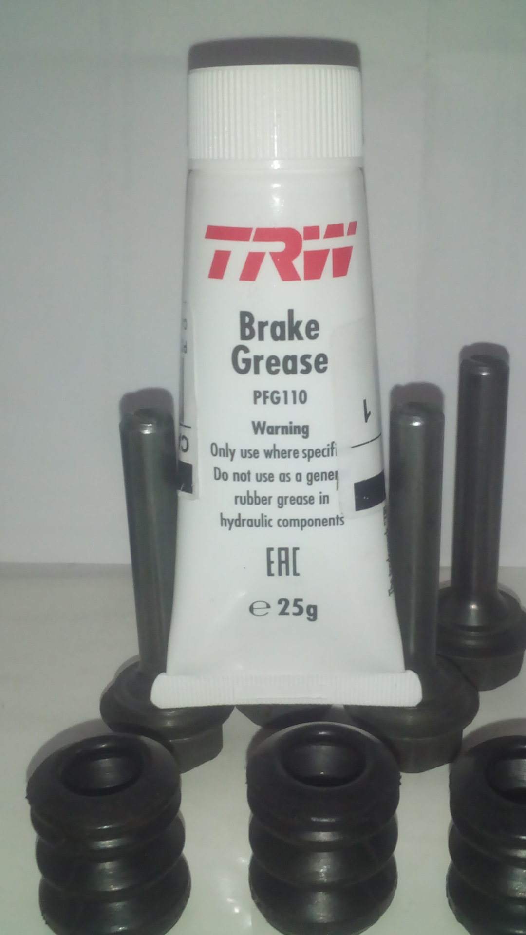 Сегодня ровно тоже самое сделал с тормозами, заменил заводские ТИИР-295 на японские NiBK PN-0223, и промыл направляющие от старой смазки, смазал их с TRW pfg-110. Смазка конечно дорогая 250р за какие то 25гр. Посмотрим как покажут себя новые колодки. Менял первый раз