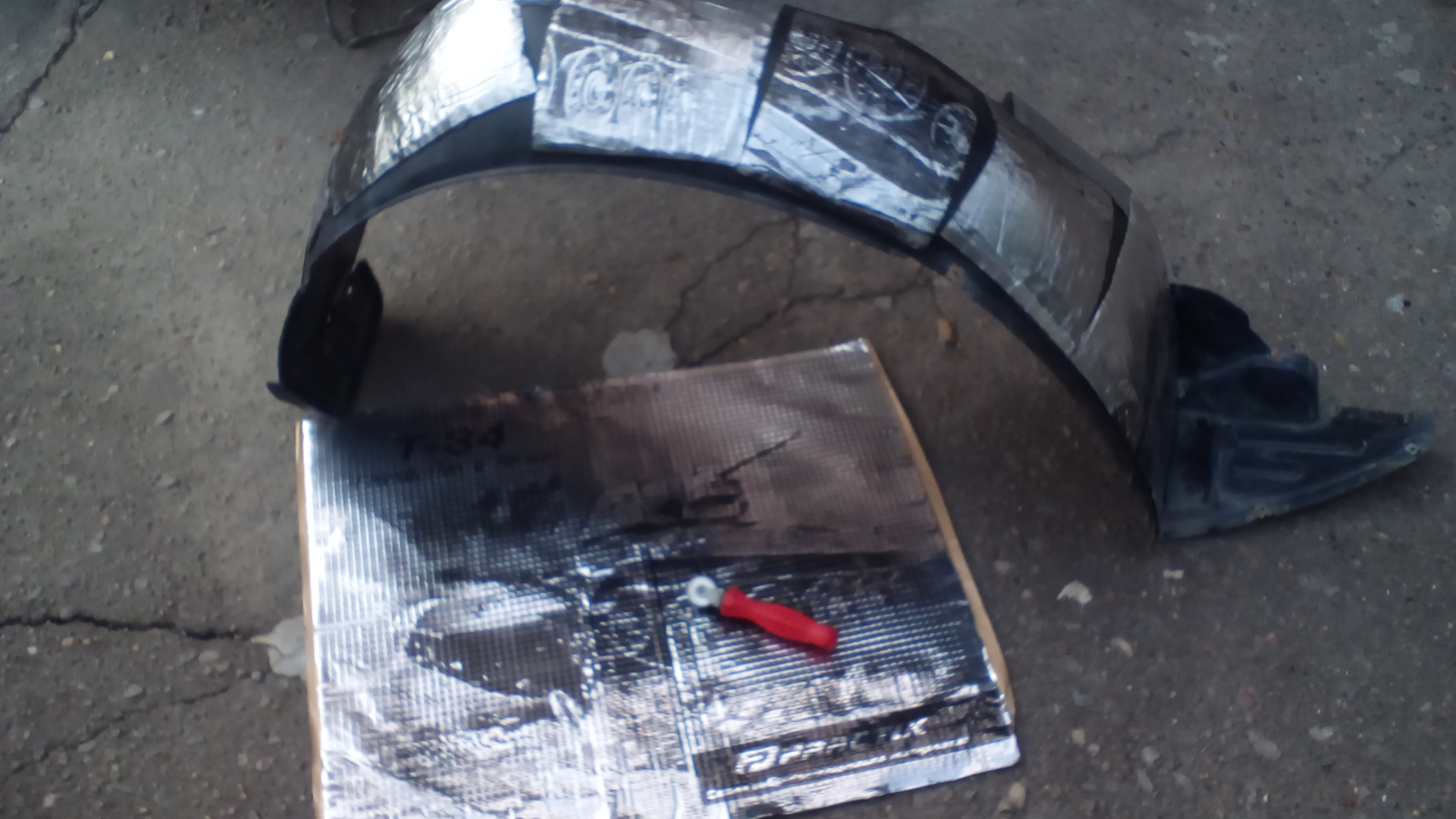 Ну и зашумил подкрылки. Что за шумка не помню, давно валялась, тройка по моему, танк нарисован).Один лист-на один подкрылок уходит.
