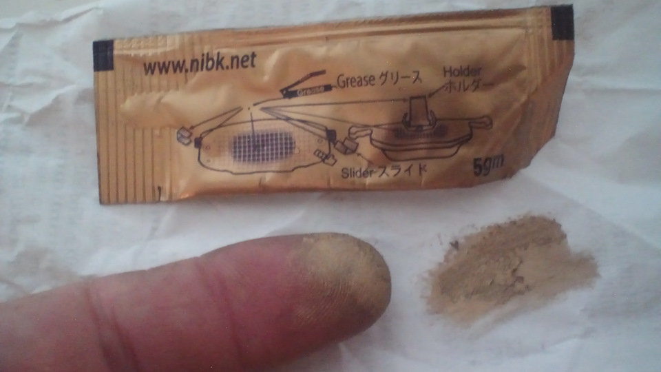 Направляющие хотел сначала смазать смазкой МС1600, но почитал хорошие отзывы о смазке TRW, её и заказал в экзисте.Смазкой мс1600 смазал тыльную сторону колодок
