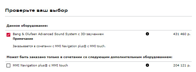 Что касается стоимости 50 тыс. рублей: некорректная формулировка. Q5 в базе оснащается ASS 180 ватт, это не значит, что она достается даром, она имеет цену. При заказеB&O, вы только доплачиваете за большее колличество колонок, более мощный усилитель и программное обеспечение, варианты магнитолы сюда не входят.