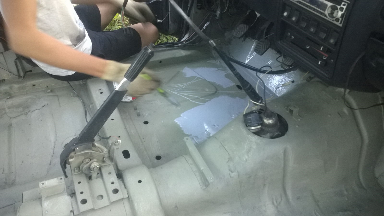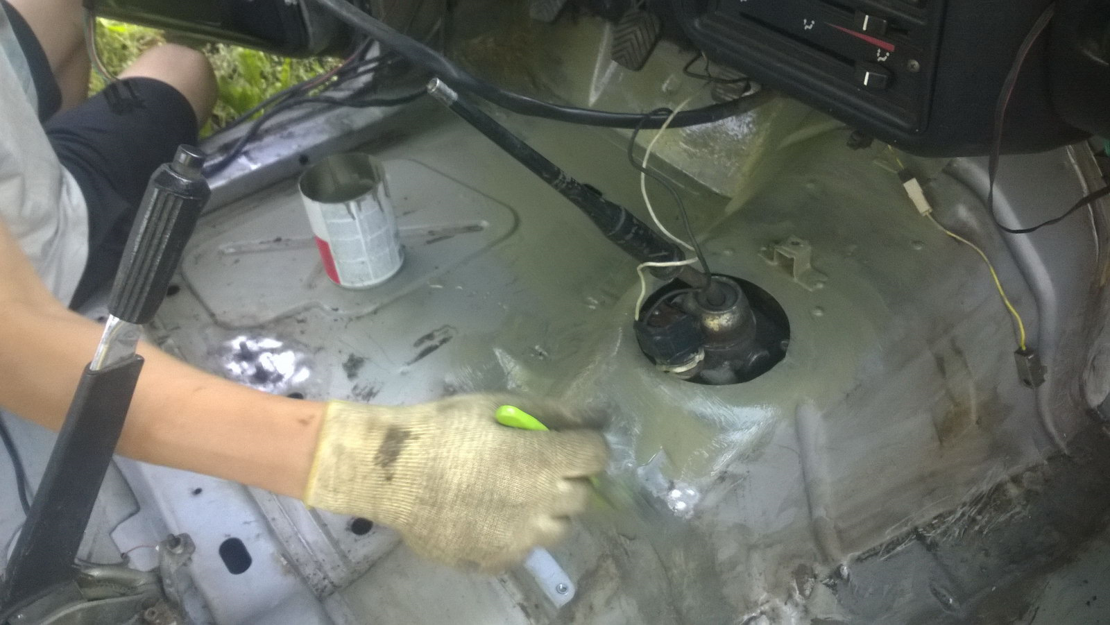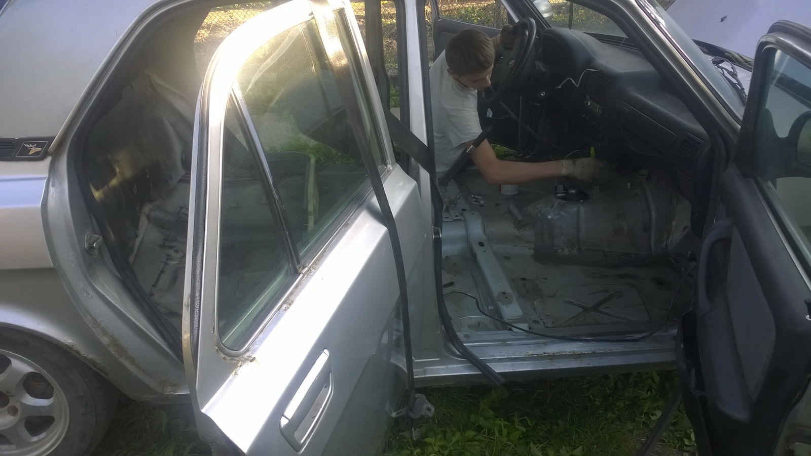 1) Разбираем салон (долой сиденья, напольное, шумку). Демонтируем (хотя бы в местах плохого прилегания и где проступает коррозия) родную шумку и шовный герметик