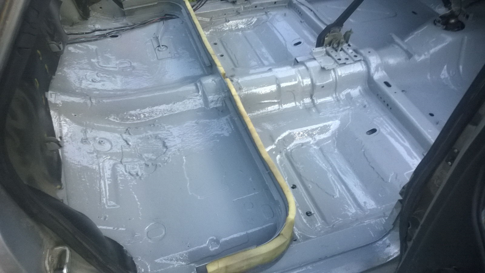 И можно будет проантикорить скрытые полости и на следующий день собирать салон (на 2-3 день покрытие примет достаточную прочность). Но в идеале на следующий день окрасить вторым слоем той же грунт-эмалью, нос добавлением уже не эпоксидки, а 20-30% отвердителя от акриловых изделий (акрил, лак…). Затем оперативно проантикорить лонжероны через заводские отверстия и побыстрее застелить родные шумоматы, что бы они буквально приклеились ко второму слою, этим будет обеспечена очень хорошая шумо-вибро изоляция.