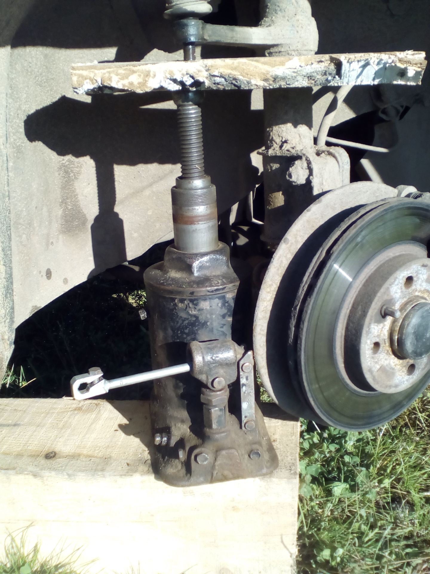 не понял, а сверху что давит на рычаг поворотный? или ты тупо снизу давишь домкратом? )