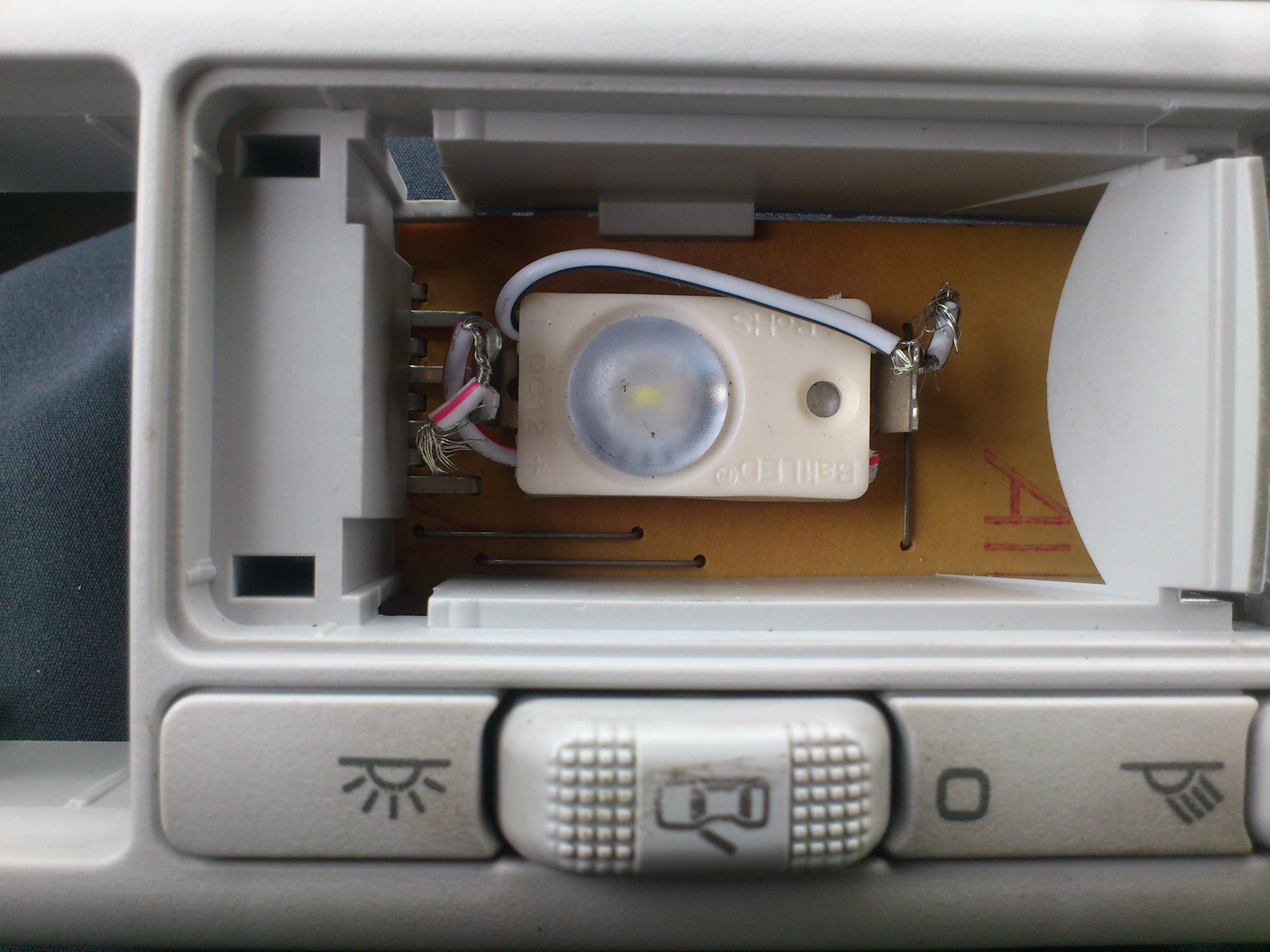 запили диоды масу на серый провод а плюсом через 1 килоом резистор к чорному проводку. У меня такойже плафон и таже система) денис если не секркт что имено тебе нужно знать про плафон? у меня дома есть ищо один могу сфоткать или розказать про цыетность и назначения проводов