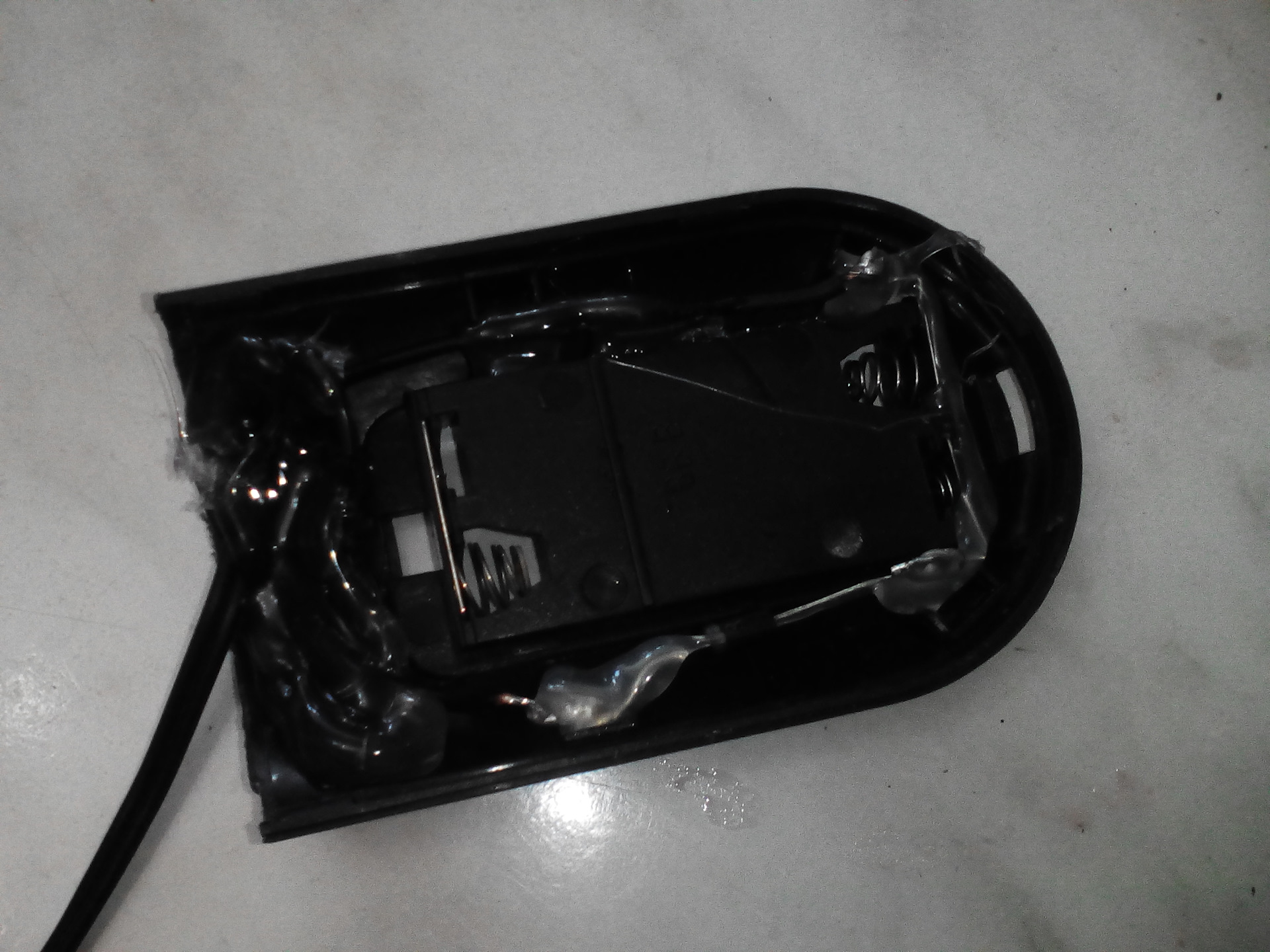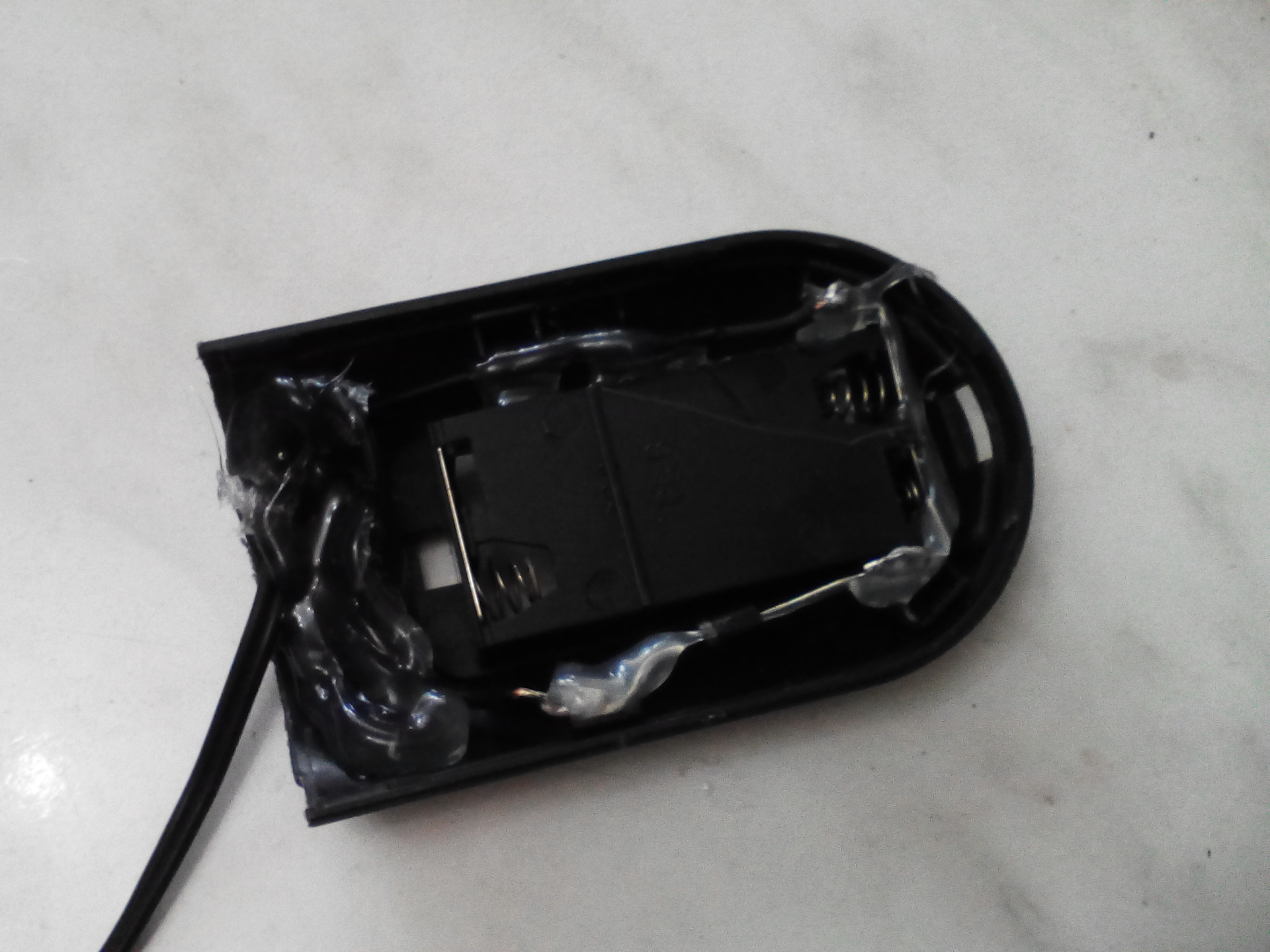 ну а дальше на "+" на всякий случай был подпаян диод, и провода, Зафиксировал, чтоб не болталось, термоклеем.
