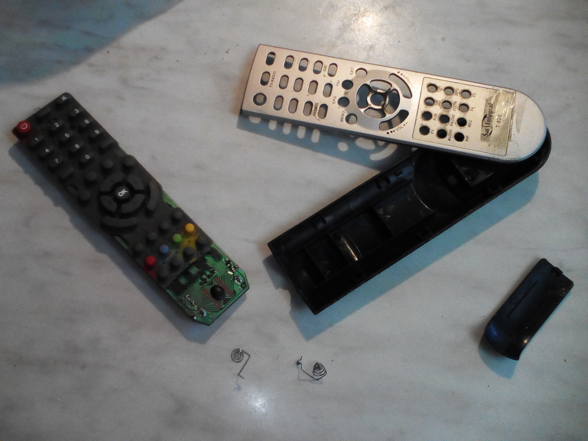 Для начала раздобыл старый пульт ДУ (не важно от чего). И был отпилен отсек от батареек: