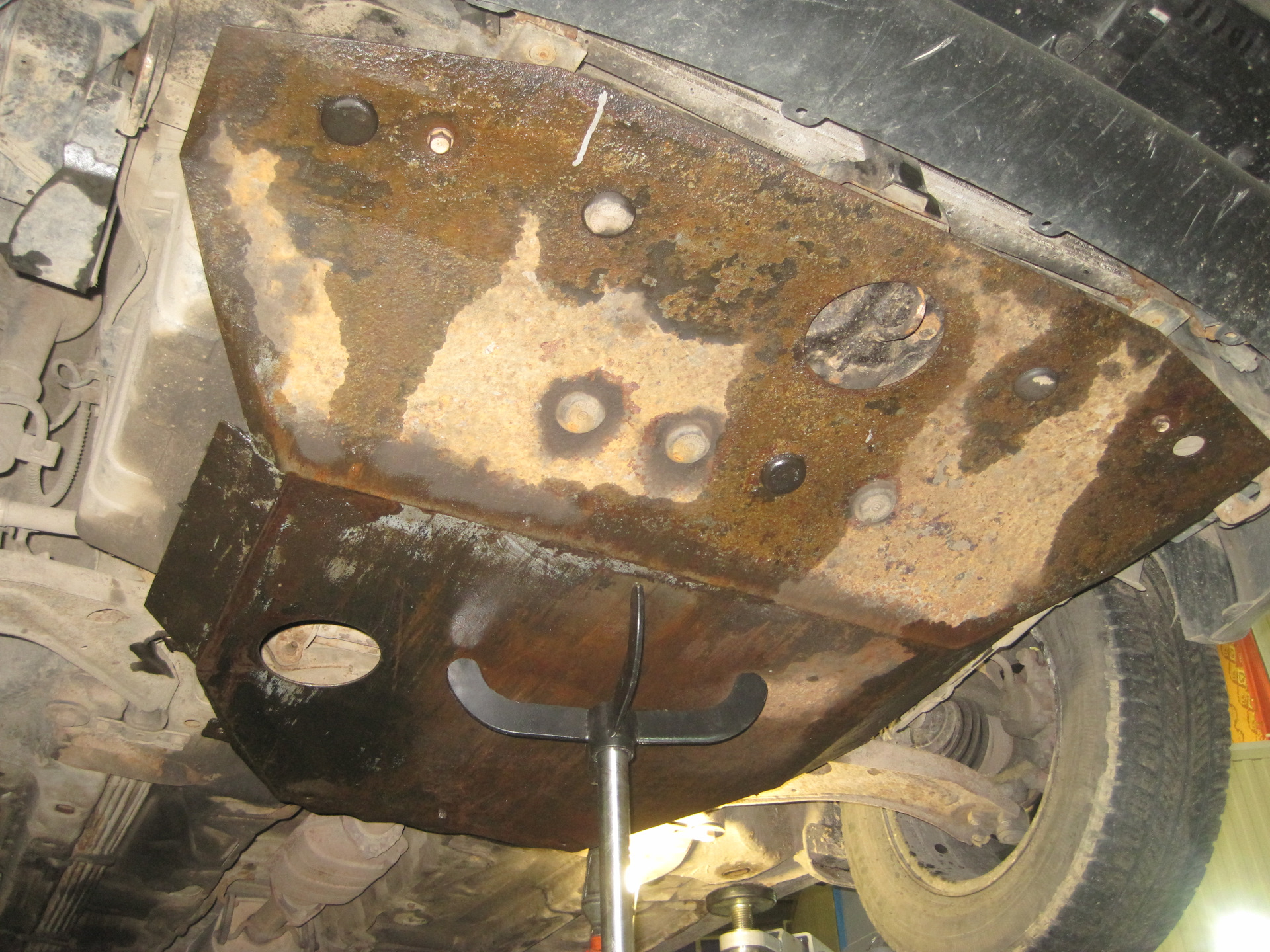установил защиту вчера, огромная тяжелая.кой как отмыл от мазуты-сперва соляркой с тряпкой, потом обезжиривателем.защита стала четко.Отдельгое спасибо предыдущему хозяину машины что не забыл мне ее отдать.закрывает все подкаротное пространставо, +трубу с гофрой, метал толстый и ска тяжелый ткак делал один пришлось использовать пневмостойку