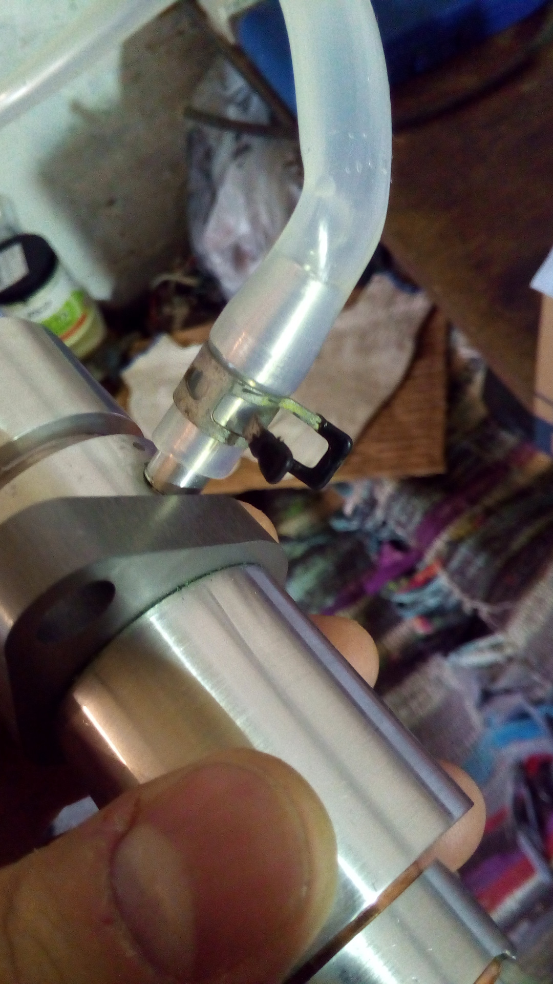 далее первичная разработка штока, как и говорили ребята помазал тормозухой и несколько раз покачав, шток более легче стал ходить, замок как родной