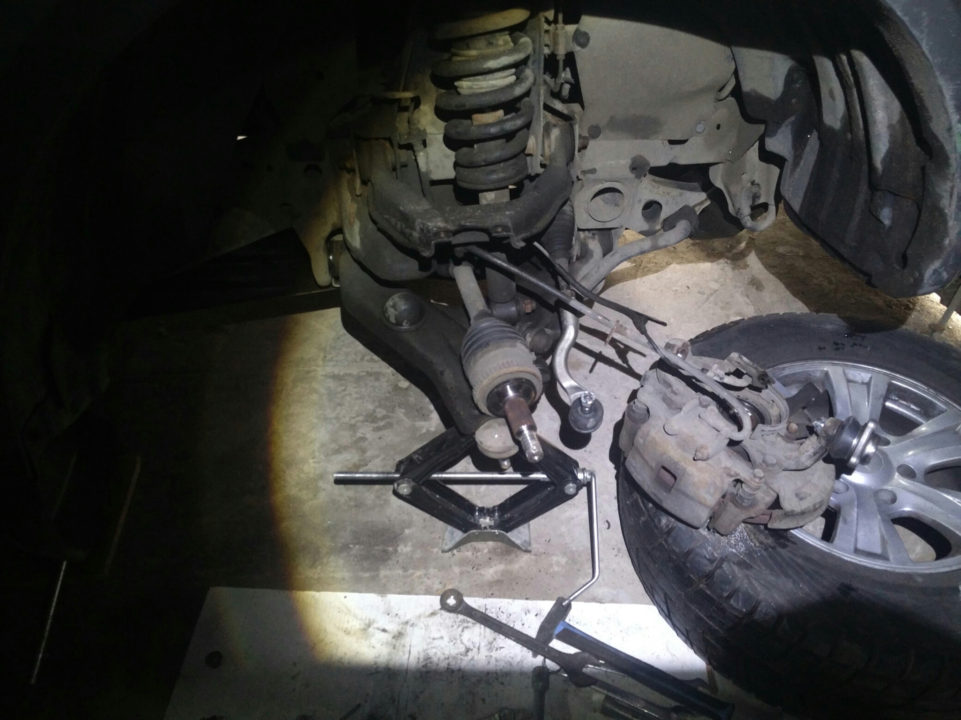 Решил поменять шаровые и рулевые наконечники, заехал к сервисникам цена была озвучена в 7 тыс, подумал и поехал менять сам.Посидел подумал работы на пару часов и сам справлюсь.Но не тут то было, первая нижняя шаровая вы**"бала мозг часа на три, третий болт с*ка два часа вытаскивал залип на смерть.Потом все на опыте пошло как по маслу.Лайвхак, если болты прикипели нужно накидным ключом тянуть головку болта и снизу молоточком постукивать, выходят на ура.