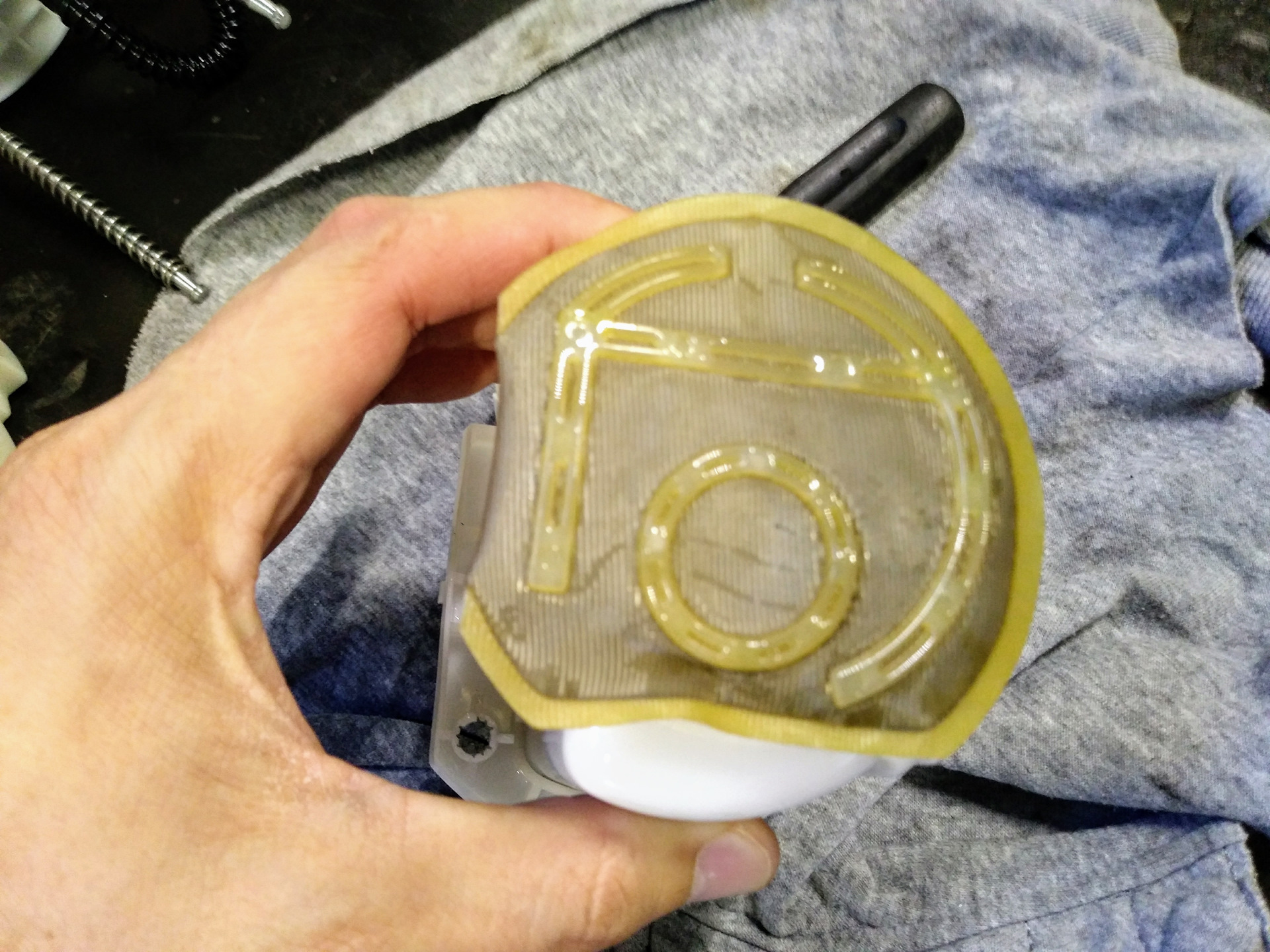 У ОД в сервисном отделе был стенд с фотографиями фильтров в разрезе, из чего я сделал вывод, что новый фильтрующий элемент должен быть розового цвета, а мы имеем черный цвет.