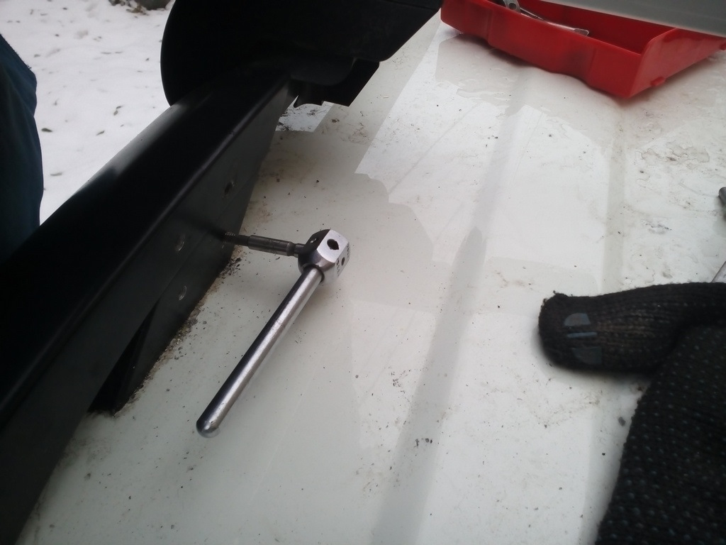 Релинг в этом месте алюминий. Нарезал резьбу. Уголок усиленный из Леруа.