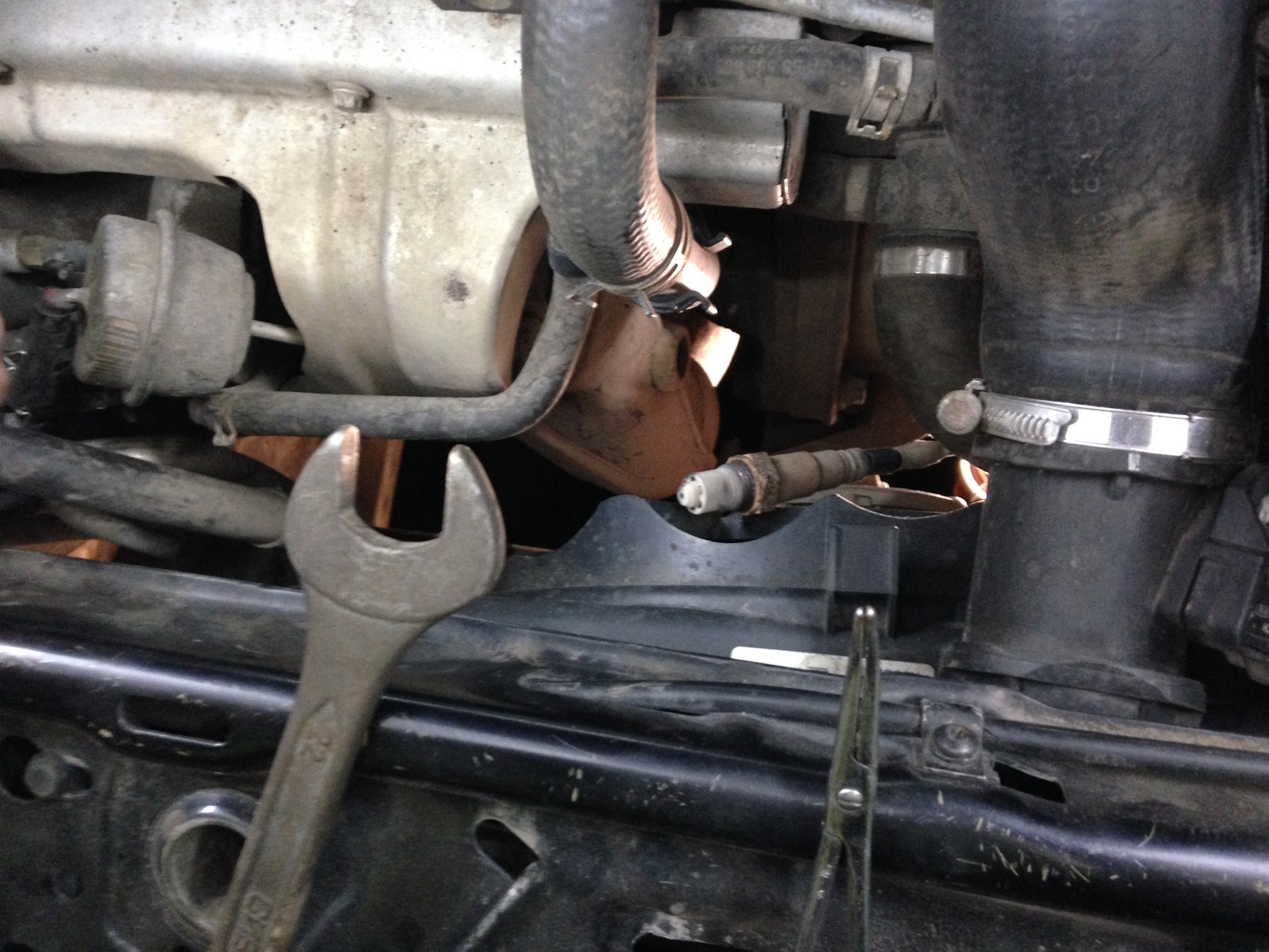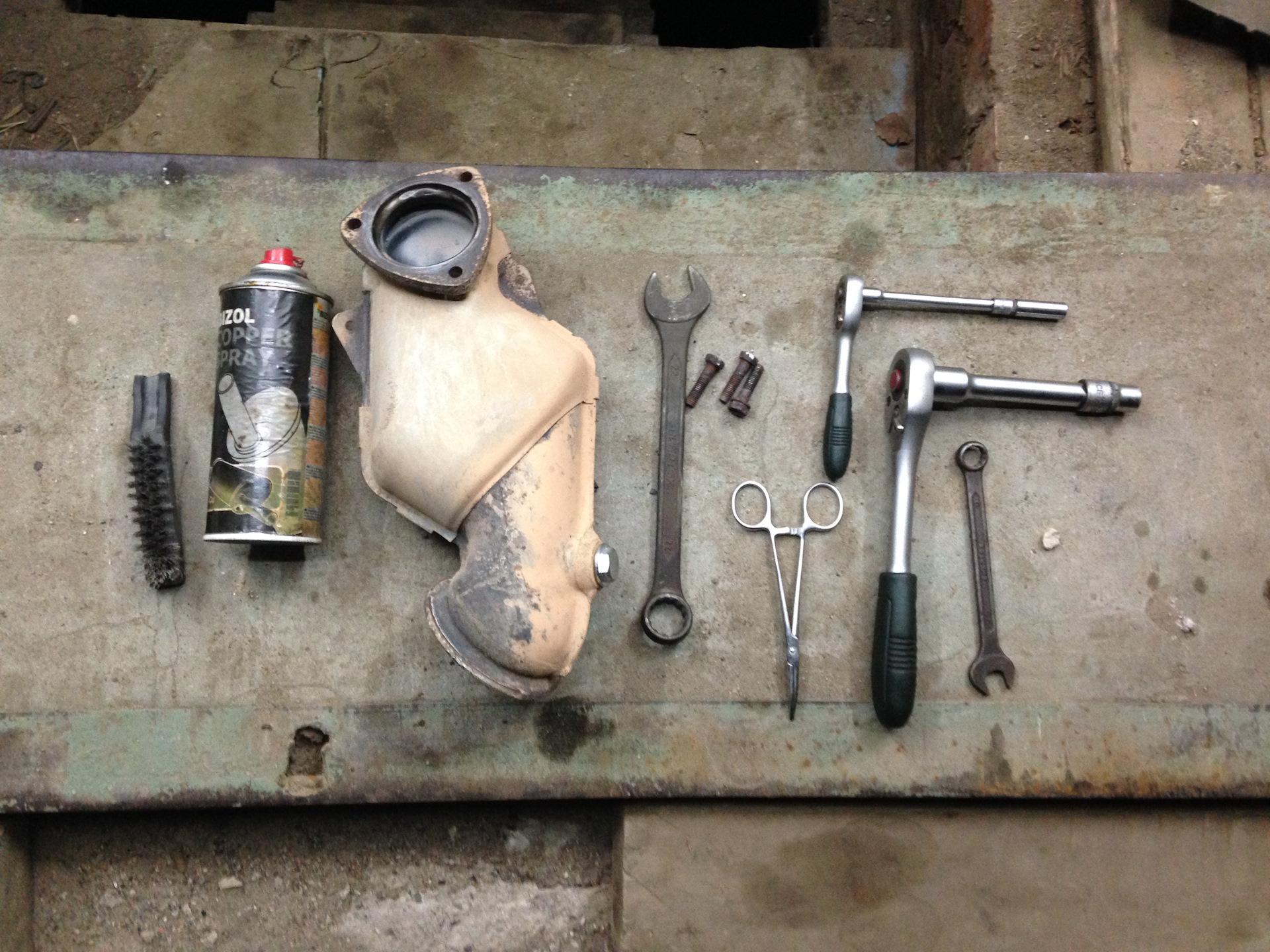 20 минут времени, щетка по металлу (почистить резьбу болтов на приемной трубе), медная (графитная) смазка (смазать новые шпильки "что б не прикипели"), ключ рожковый 22 (откручивать лямду), зажим (утконосы) (освободить стяжки крепящие провод лямбды), головка 8 (откручивать хомут фланца турбины), головка 13 + рожковый 13 (откручивать приемную трубу).