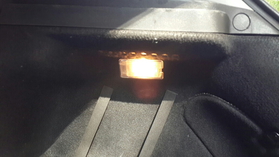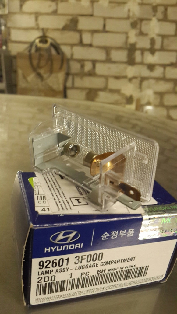 Пока был разобран багажник, протянул провод для плафона справа. Фонарь заказан оригинальный Hyundai. Вот его номер, если кому нужен: 926013F000. Цена 145 р. Установка проще некуда! Отмеряем, вырезаем, радуемся. Доработка простая, но эффективная. Вечером освещается все пространство багажника. Скоро придут диоды и освещение будет поярче.