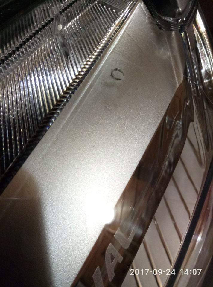 Крепеж “мухобойки” царапает левую фару и решетку.
