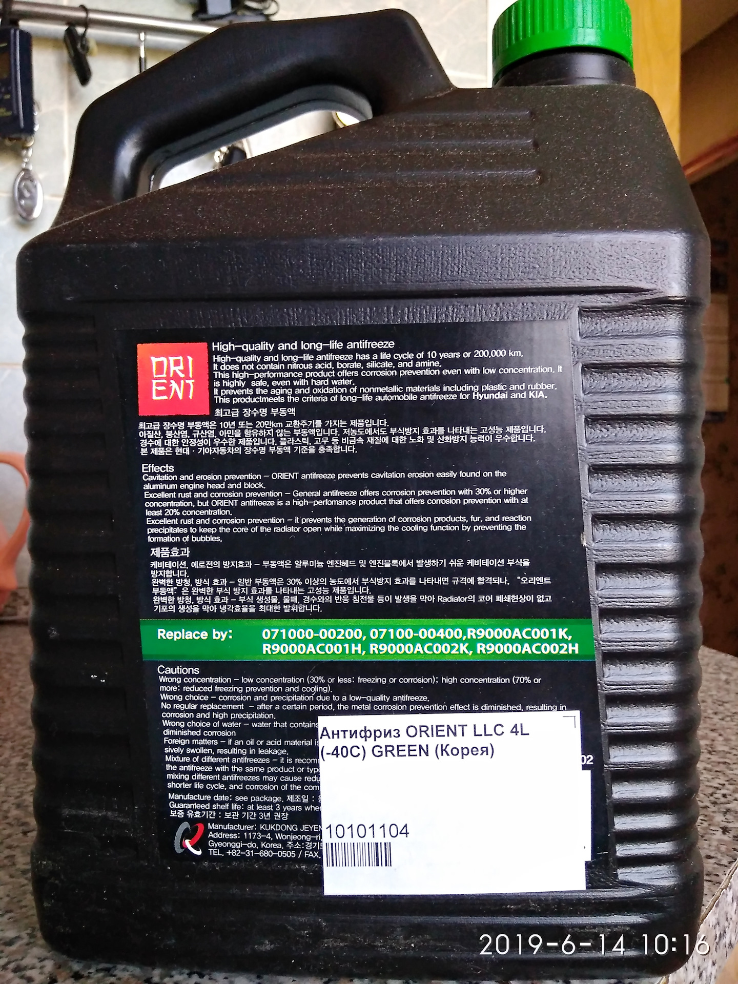 Но мы прекрасно знаем, что это не так и антифриз там зеленый. По данному моменту нет никаких уточнений, а по звонку технический отдел отвечать не хочет, посылают на сайт читать. Есть у них и зеленые антифризы. Один SINTEC EURO G11 который рассчитан до 120 000 км, что совпадает с рекомендациями KIA по сетке. Второй более правдоподобный на мой взгляд для поставок на конвейер KIA — АНТИФРИЗ ОЕМ for Japanese and Korean cars.
