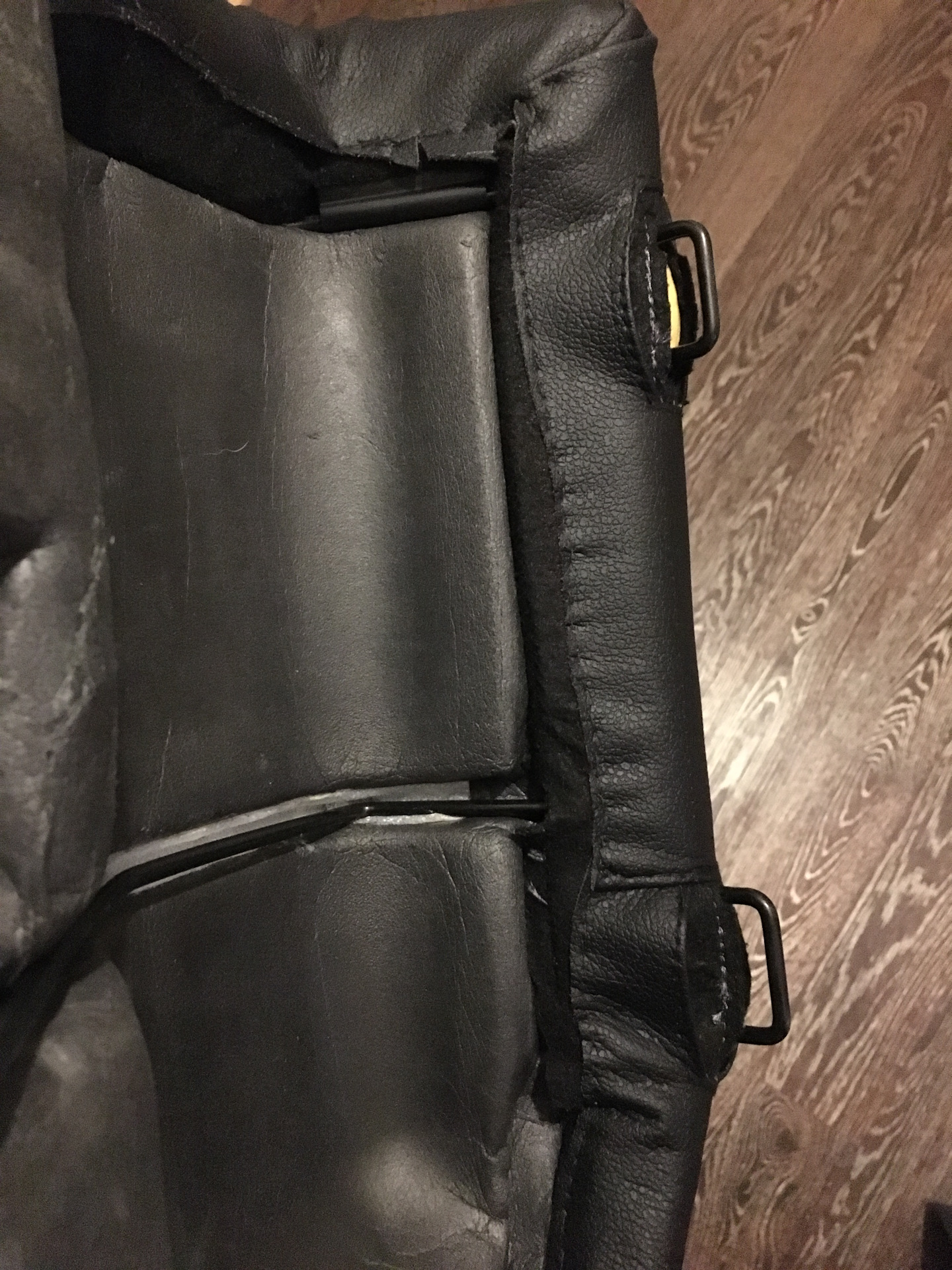 Пришивал по периметру к родной обивке, параллельно натягивая и местами перешивая в районе швов.