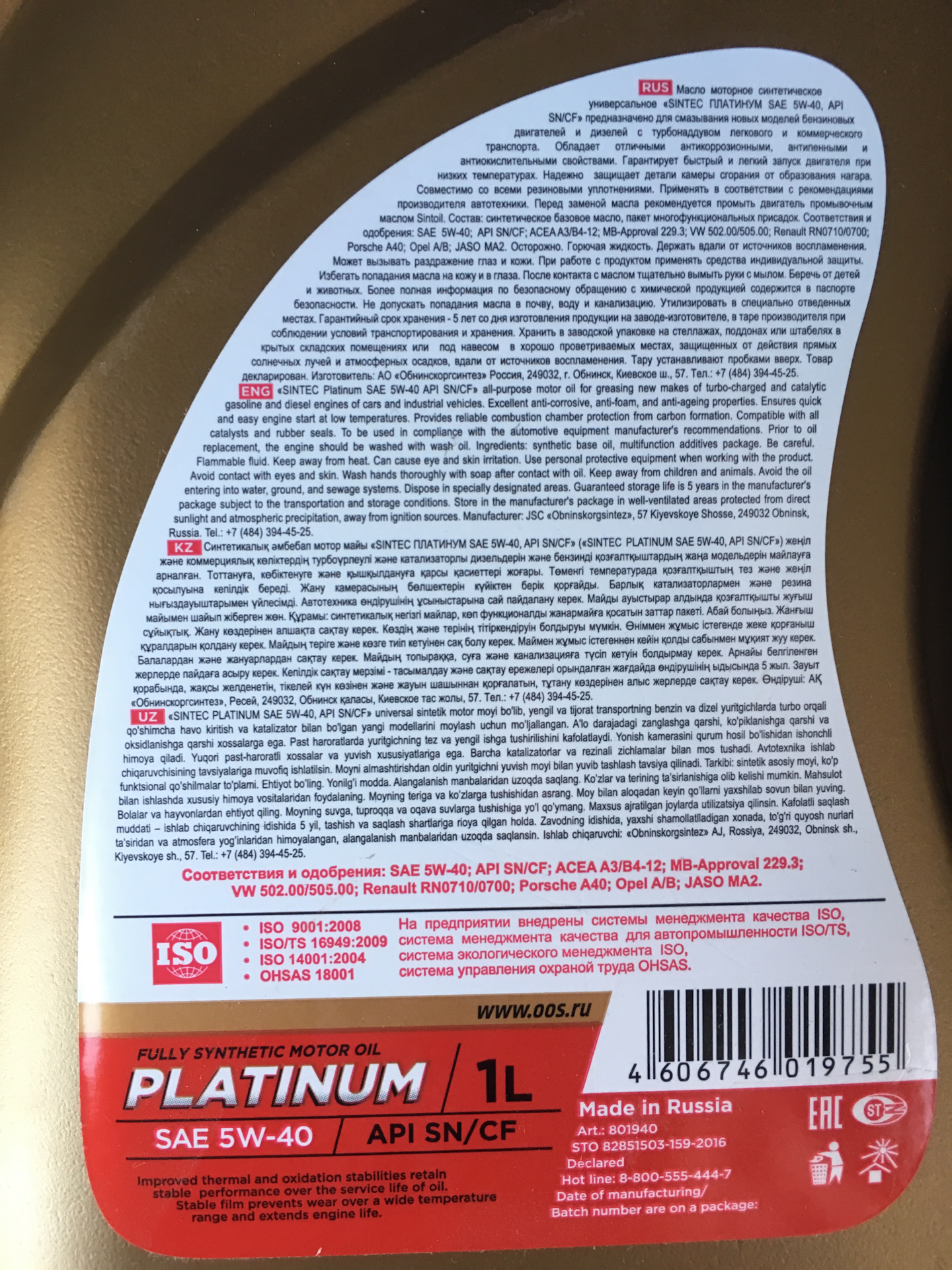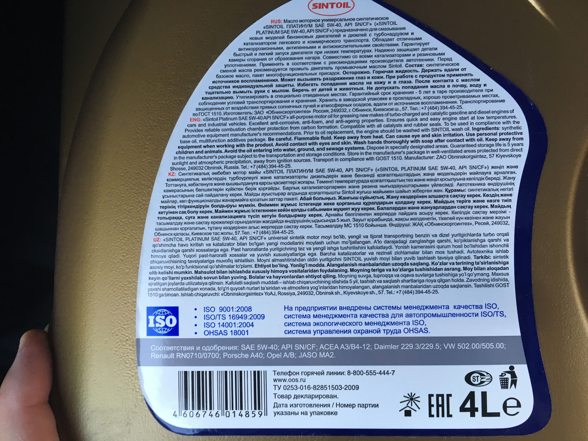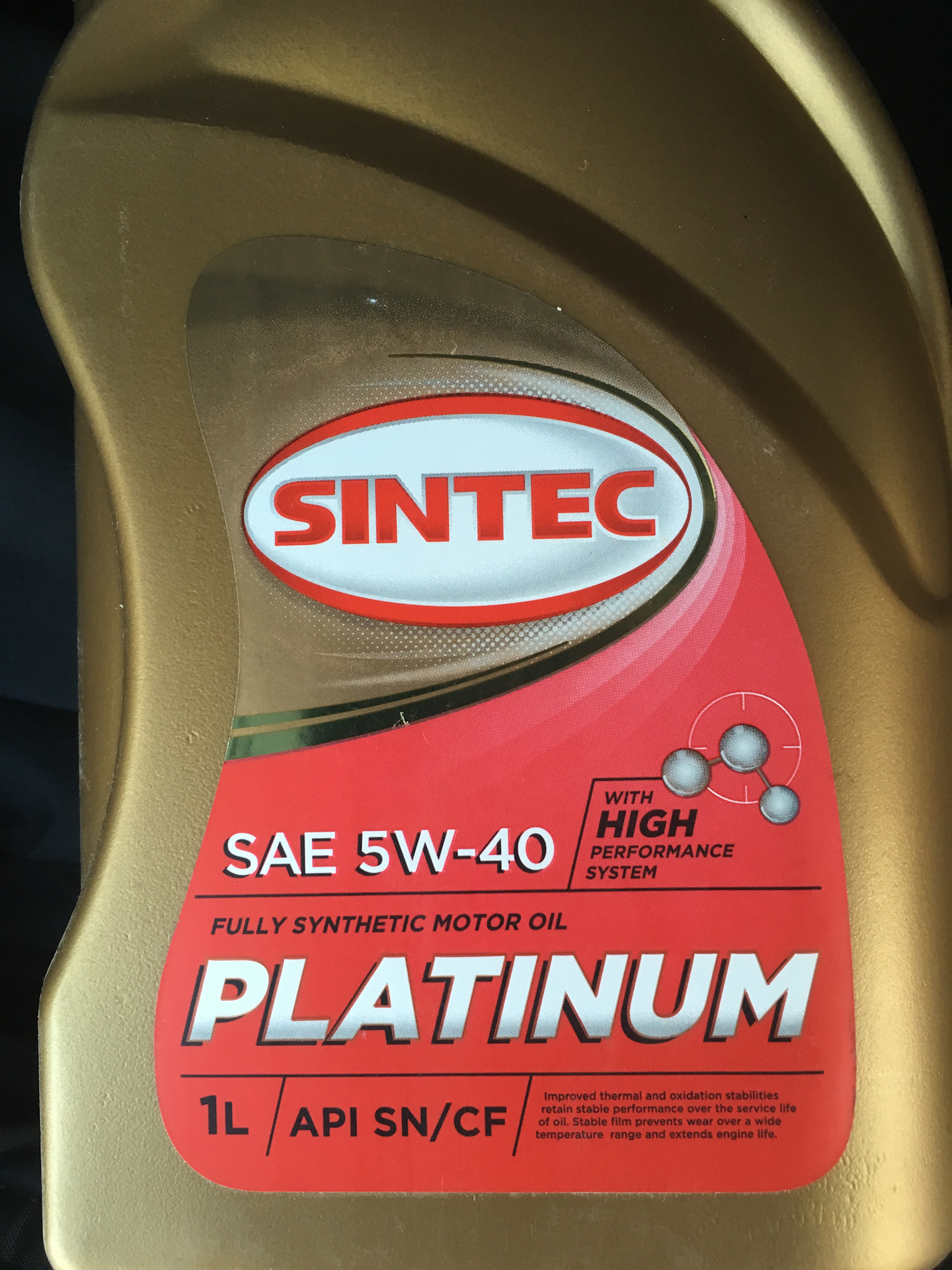 И одна 4х литровая канистра Sintoil Platinum 5w40