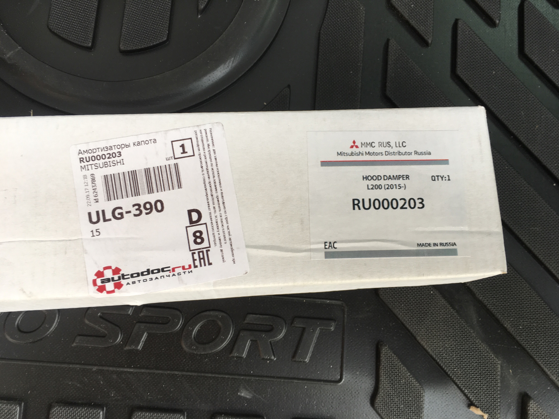 Такой вопрос — коробки от этого набора не осталось? Инетерсно узнать партнамбер этого девайса. На первой фото в теме про этот девайс видна надпись "Mitsubishi Pajero Sport", а вот то, что слева от нее — не видно. Там как раз знак заводской с серийником и кодом запчасти.