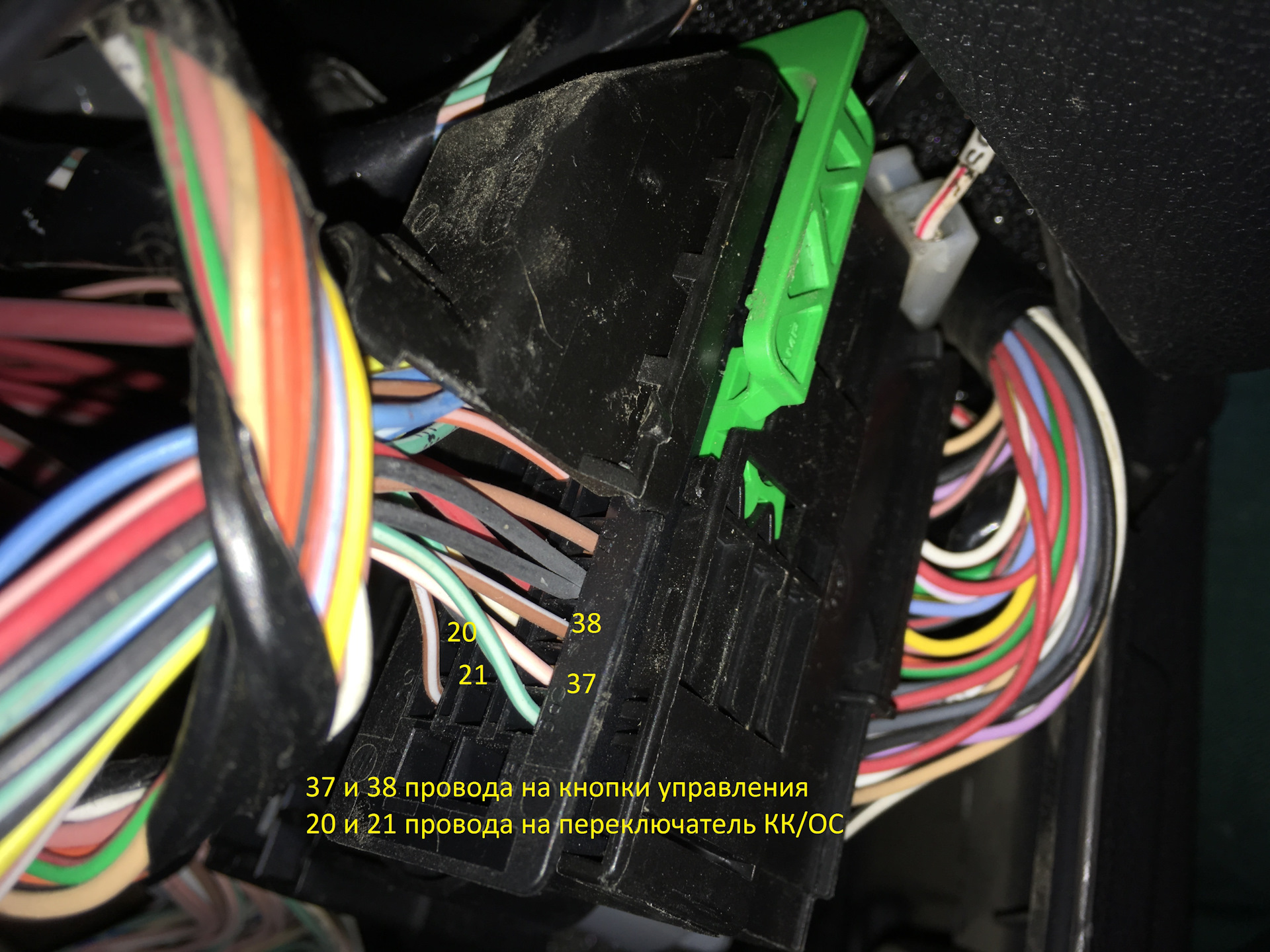 Провода подсоединил к серому разъему под рулем на который приходят проводки под номерами 37 и 38.