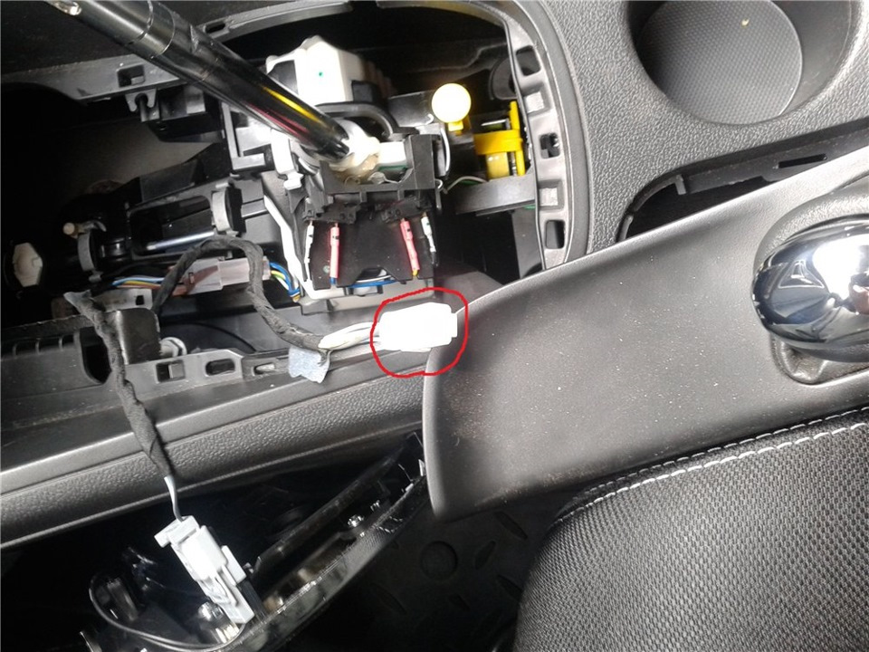 Ну и вдохновленный первой удачей я полез искать другой разъем, тот который находится под панелью с кнопками управления светом, слева от рулевой колонки где предохранители.