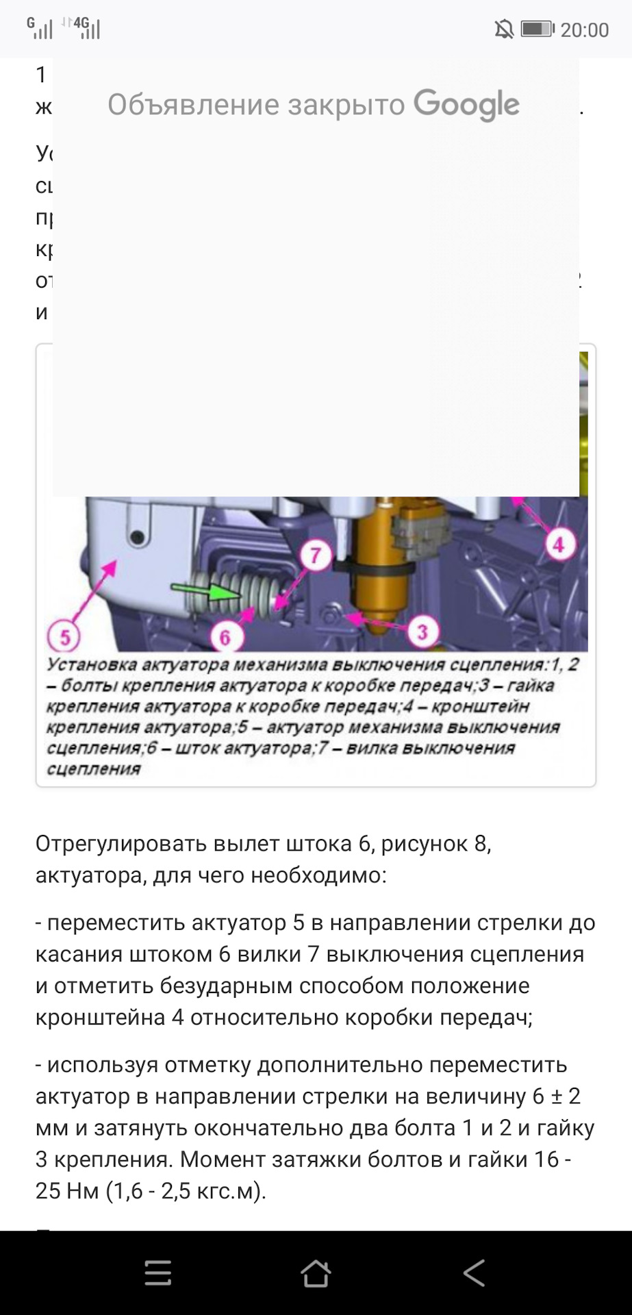 По мере износа диска вилка сцепления сдвигается в сторону актуатора, шток задвигается, компенсатор износа (белый кирпич ) сжимается . В ТИ на Приору с АМТ вычитал что при установке актуатора между вилкой и штоком актуатора выставляется натяг 4+-2мм . Когда при установке 3-го комплекта я озвучил это ремонтнику и гарантийщику и продемонстрировал как работает компенсатор, нажимая на шток, они молча удалились в подсобку, потом слесарь вернулся и молча начал мерять линейкой этот зазор, я лезть не стал, стоял далеко в стороне чтоб не нервировать ) На кронштейне актуатора есть три прорези для регулировки длиной сантиметра два . И что я увидел при снятии ? Актуатор был максимально сдвинут в сторону вилки сцепления, это видно по отпечатку гайки . Соответственно после пробега под 27000км сцепление подтерлось и компенсатор износа сжался до конца, мозги не понимали где точки касания и все работало как зря : удары, дерганья, уход в аварию с зажиганием шестерёнки.трыканье при поиске этой точки .