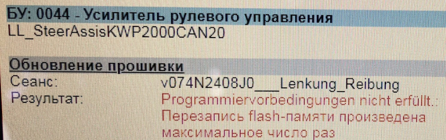 Всем привет. Хотел бы обратить внимание всех тех, у кого блок электроники тормозов MK70M MASR и кто собирается обновляться до 1K0909144R (софт 3501) — после обновления и всех адаптаций в 03 блоке может появиться нестираемая ошибка 01309 008 Power Steering Control Module -J500 Implausible Signal. В этом случае в 44 блоке в канале 3 (DSR) нужно выставить 2. Это не очевидно, но работает — ошибка уходит.