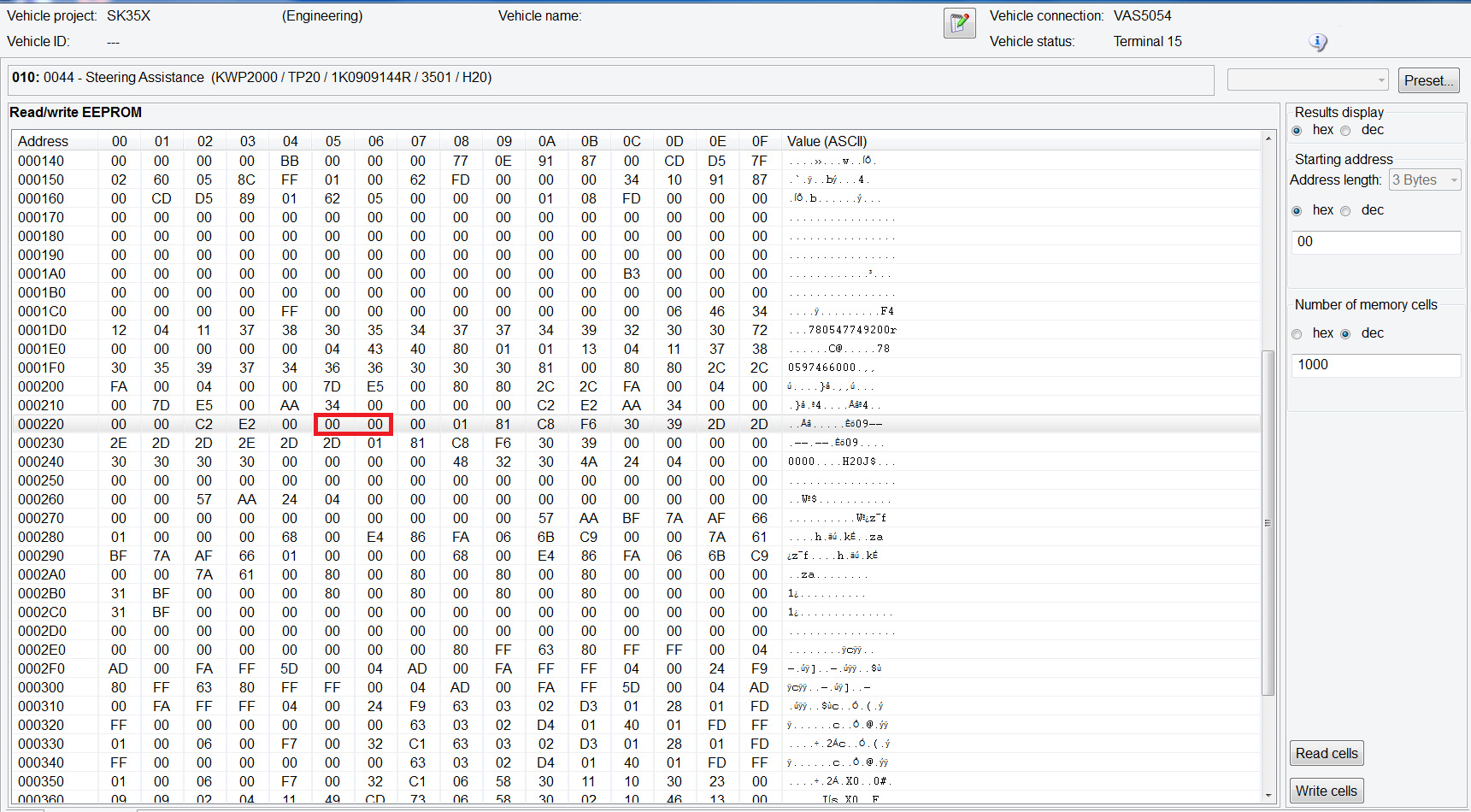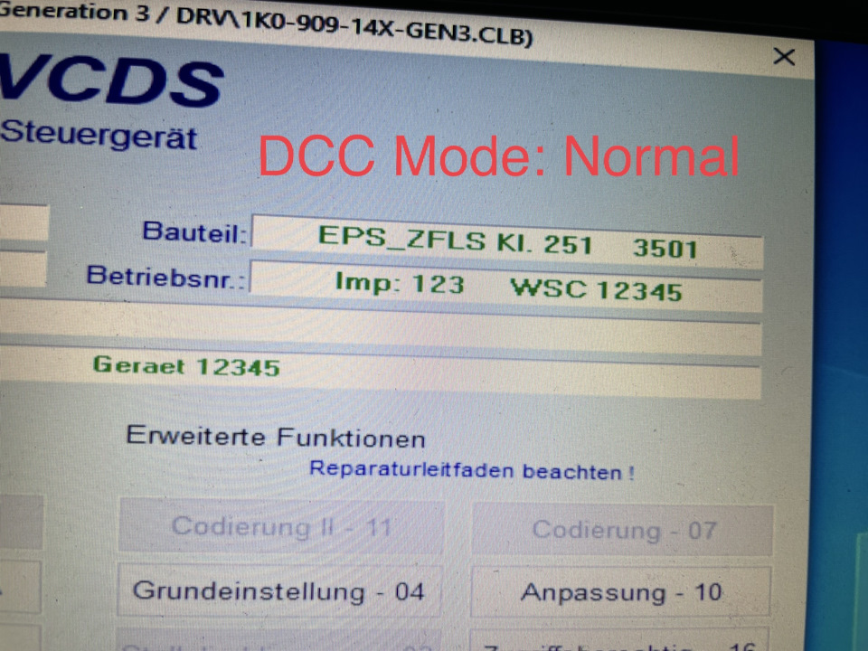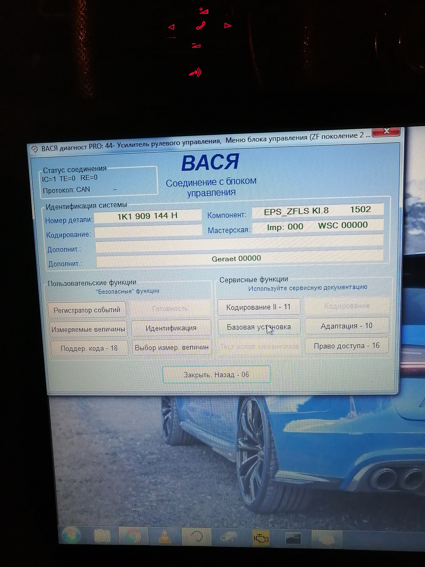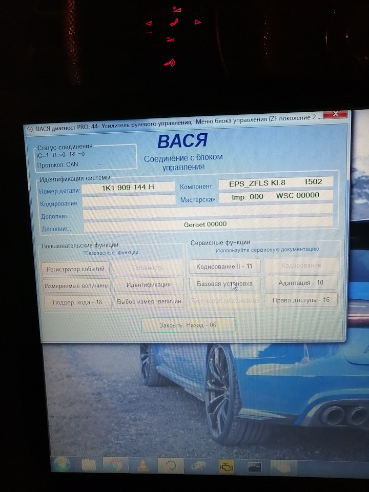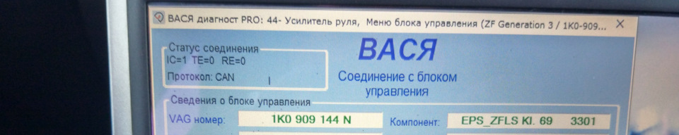 Прошиваем нашу рейку файлом lh001***.sgo, после этого рейка снова меняет свой парт-номер на 1K0909144* (без ZA).