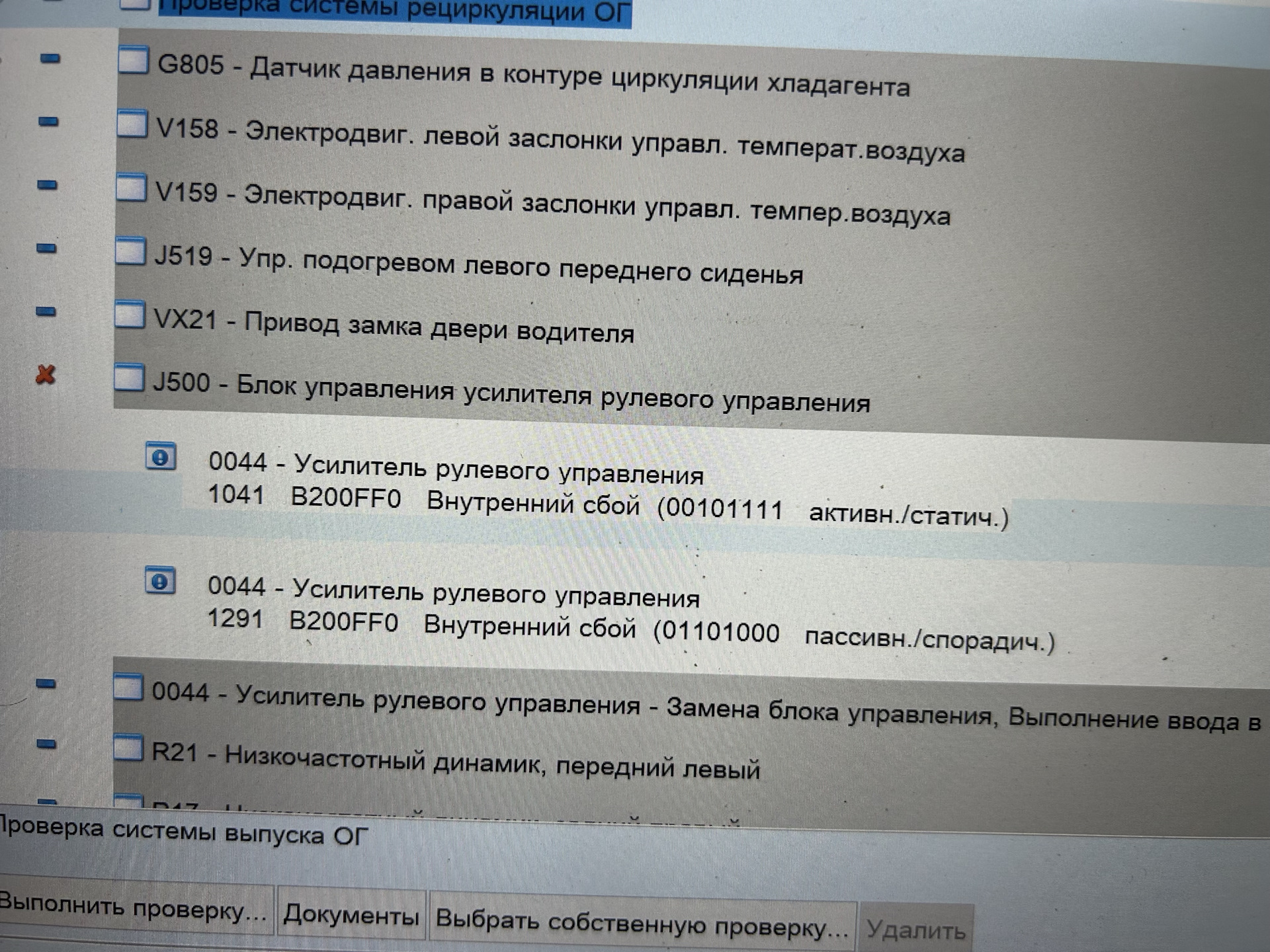 Да честно говоря после прочтения "Software-related deviation in the power steering control unit (-J500-).