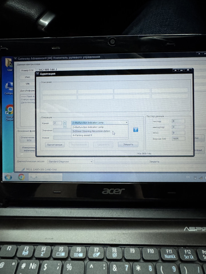 Предположим, что у нас рейка 1K0909144C с версией ПО 2301. Мы её хотим обновить до 1K0909144R с версией ПО 3501. Для этого сначала прошиваем файл lh0023305.sgo, а затем lh0013501.sgo. Далее можете прошить требуемую характеристику (этап 3) и сделать адаптацию датчика G85 (т.к. помним, что у нас 3-е поколение рейки и он не в рулевой колонке, а в рейке).