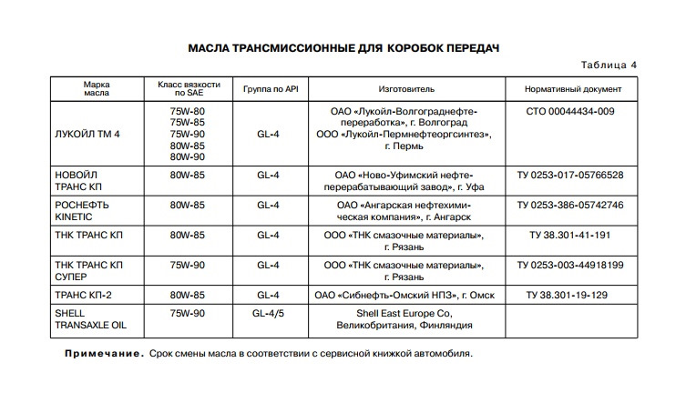 Ответ Автоваза: В КПП Вашего автомобиля залито масло Татнефть ТМ-4-12 SAE 75W-85 GL-4 ( ТАТНЕФТЬ ТРАНСЛЮКС ТМ4-12). Его ресурс 150 000 км, менять масло надо в соответствии с рекомендациями завода-изготовителя."