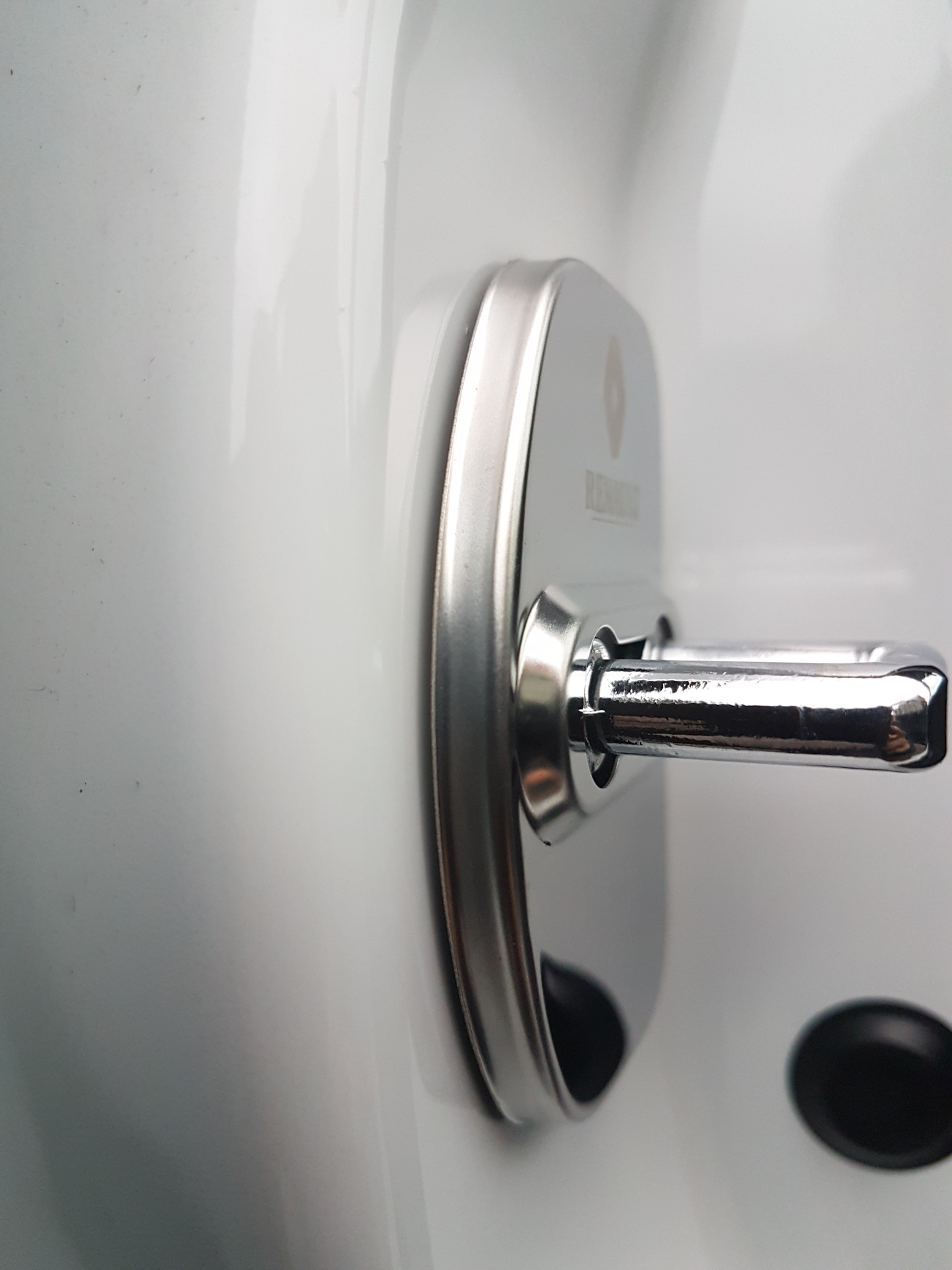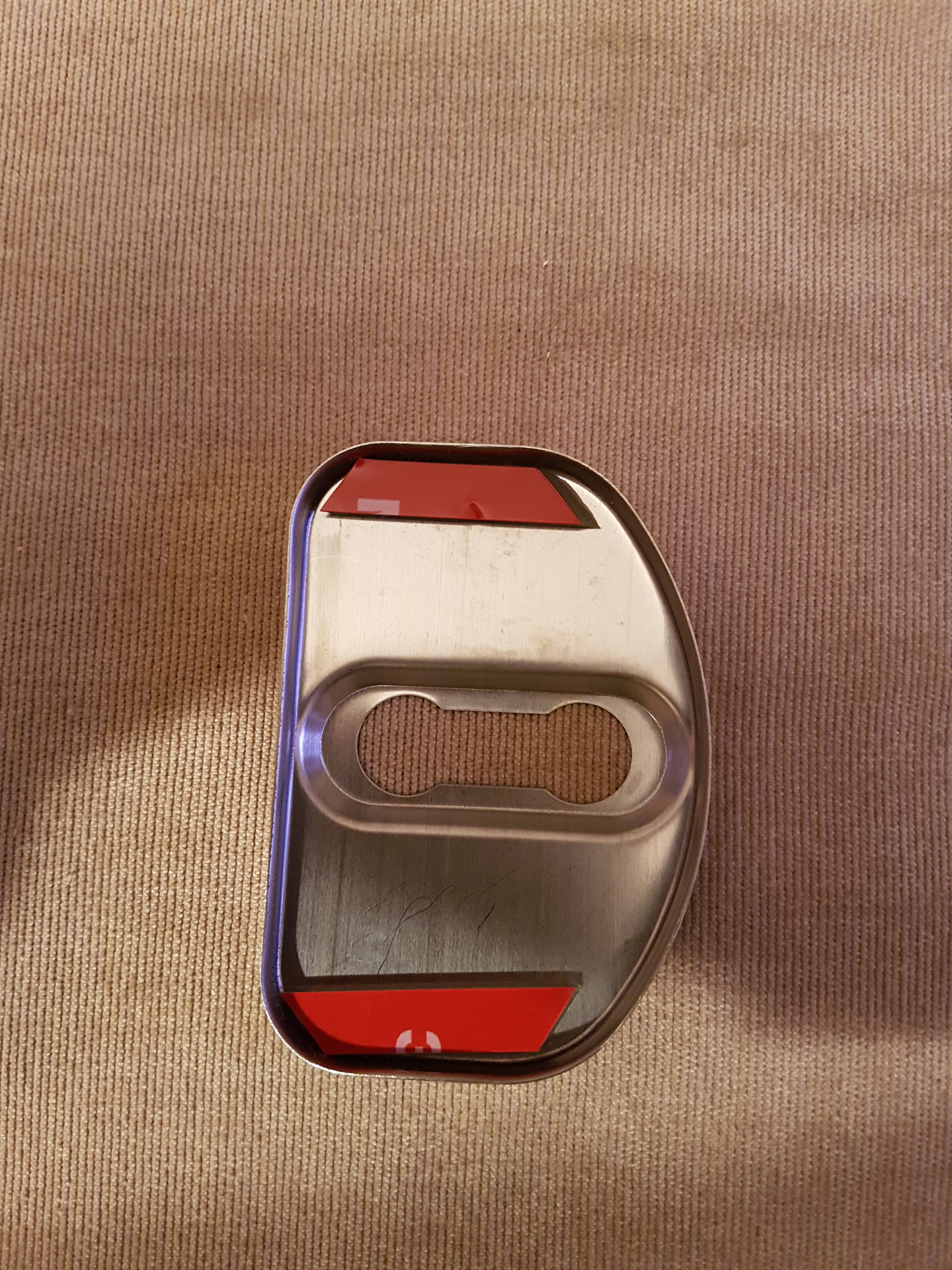 Классная штучка. Стильная, аккуратная, нержавейка. Как видите на фотографиях своей гранью не прилегает к ЛКП, зазор в 1.5-2мм присутствует. Можно выбрать разных цветов, но я решил остаться с классикой.