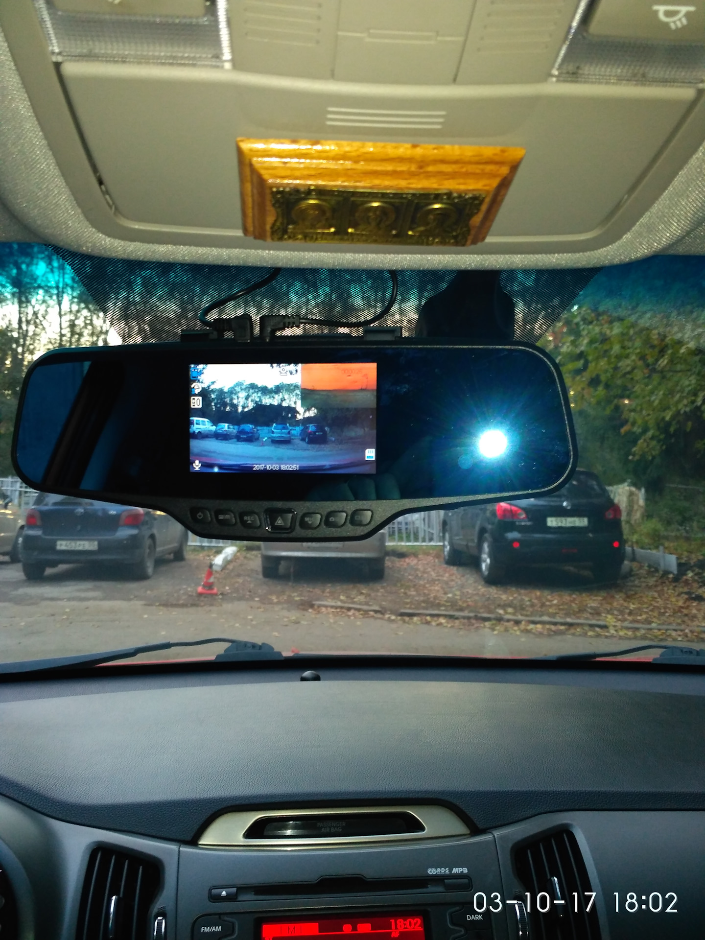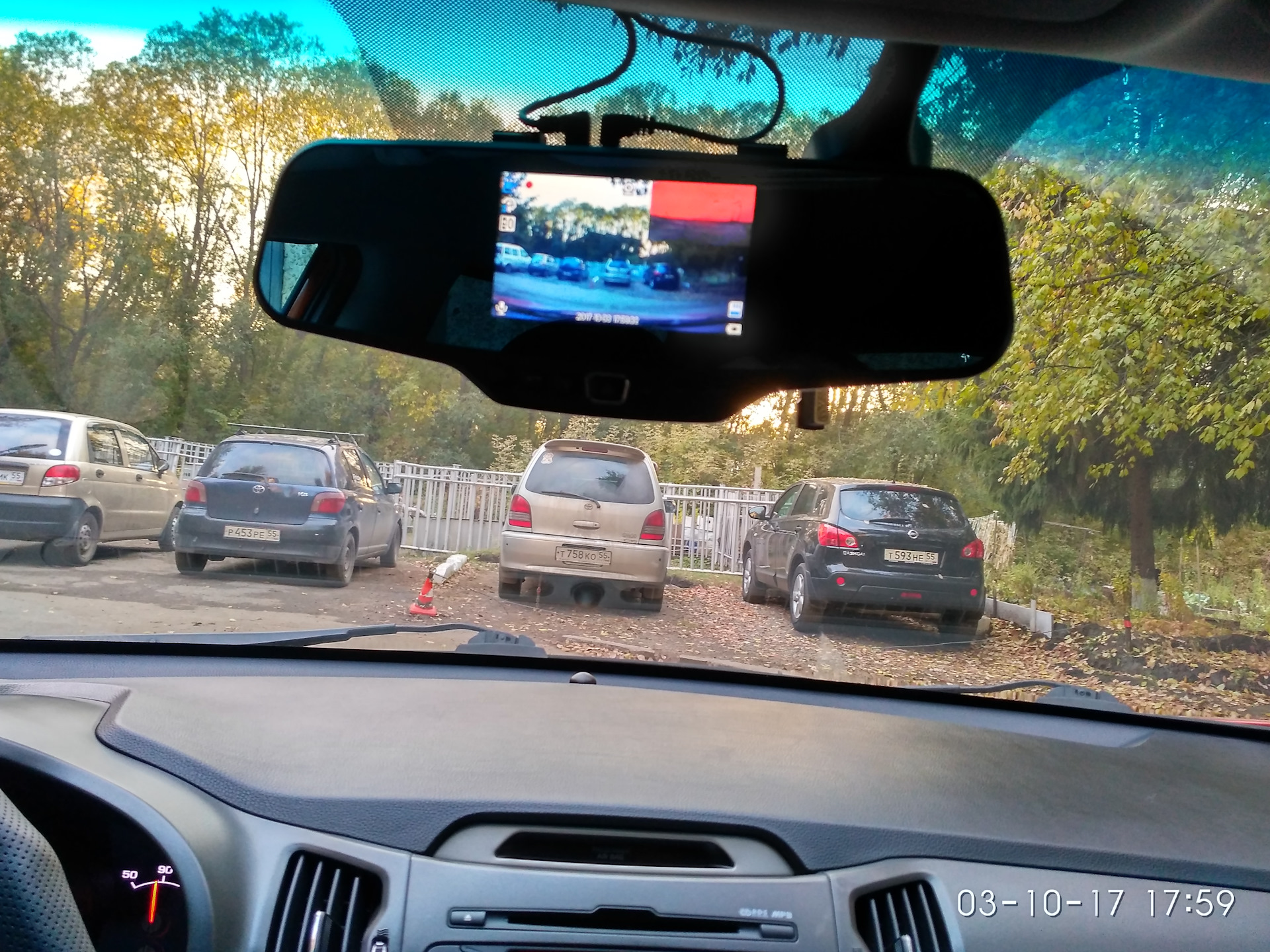 Установил зеркало с видеорегистратором и камерой заднего вида (парковки). Очень удобная штука, ставлю на четвертый авто. Изображение с камеры заднего вида также пишется видеорегистратором.