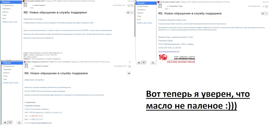 Было вечерком скучно, рылся по интернетам, набрел на страницу на Лукойловском сайте о контроле качества… Внешне канистра у меня все как описано, а тут еще про какой-то индивидуальный код написано. Глянул канистру — опаньки! есть такой код! вспомнил про полосу — решил от скуки пожаловаться, заодно про код узнать.