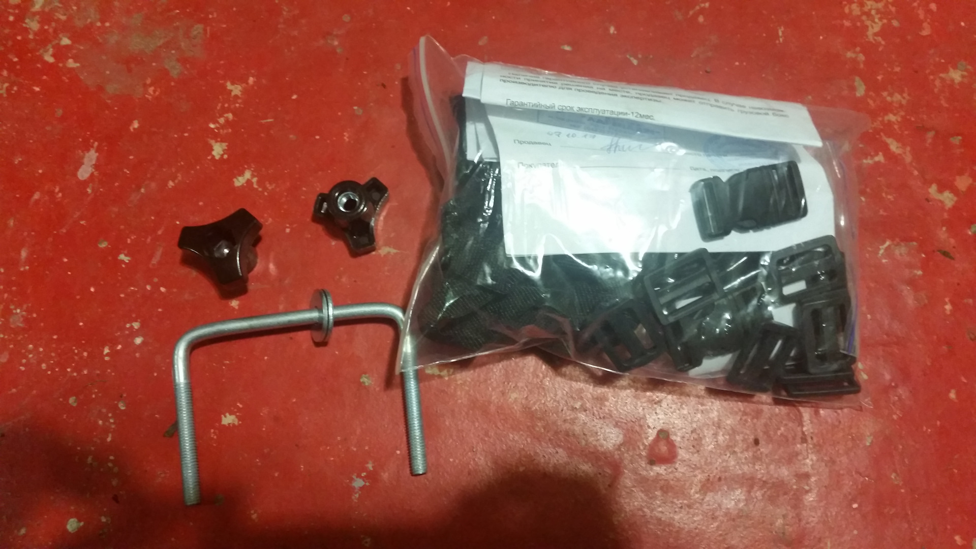 В комплекте универсальные скобы, шайбы, барашки, инструкция и ремни для крепления груза.